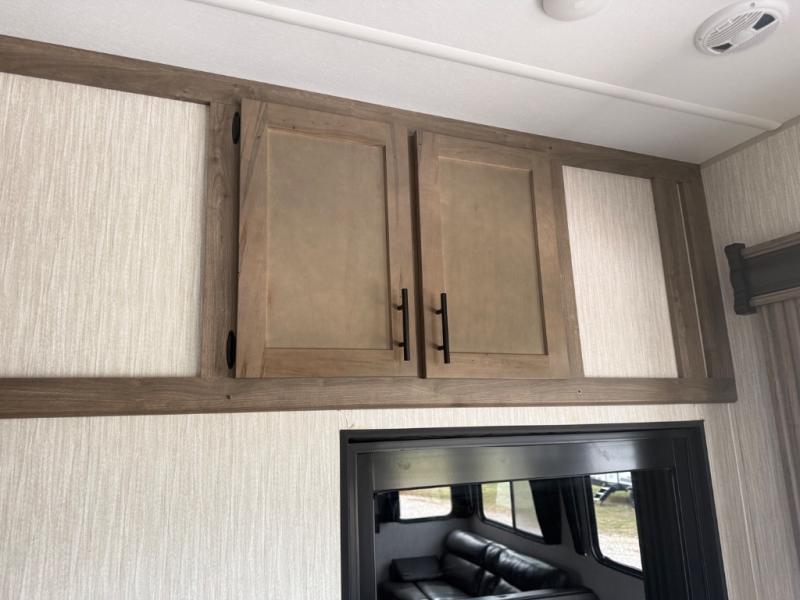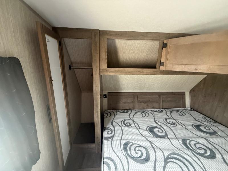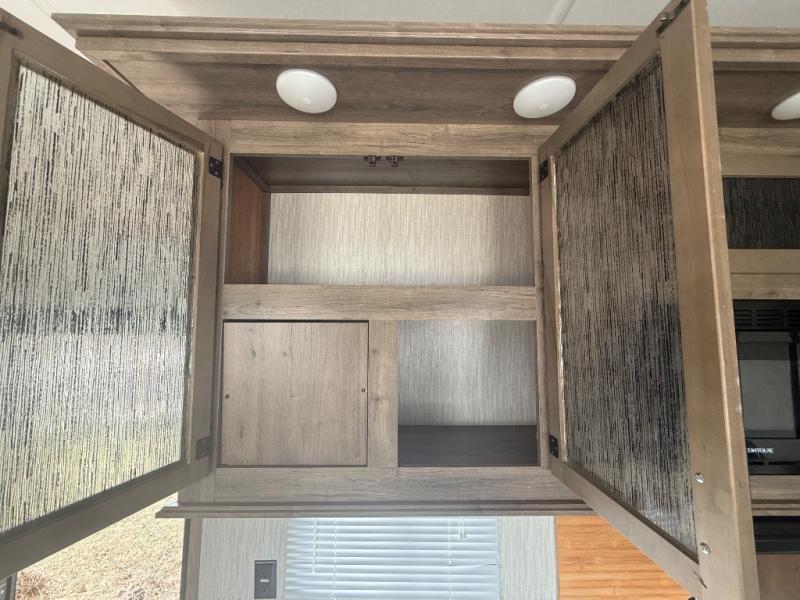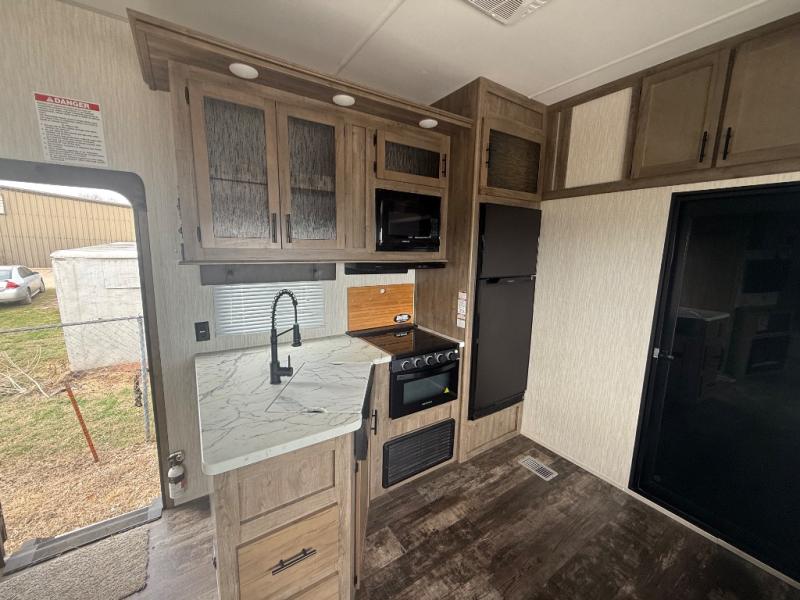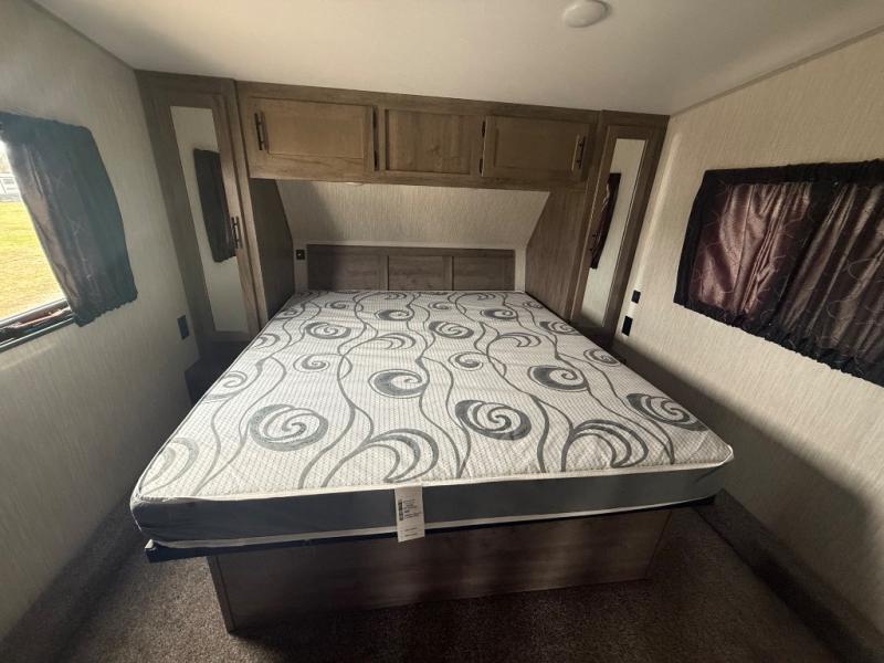 The versatile Cherokee Wolf Pack toy haulers are ready for all your excursions! Each model includes a true high gloss gel coat, a 102" wide body design, and a forced air heated underbelly and enclosed holding tanks so you can camp year around. You will enjoy hassle-free features such as, the in cab tire pressure monitor system, the Happijac bed lift system, and the 100 gallon fresh water capacity. Each model includes a shower skylight, LED interior/exterior lights, Zebra shades in the living area, and a black stainless steel farm sink for that added touch-of-home. The fifth wheels include stabilizer jacks, a second 15K A/C unit in the bedroom, and 50 Amp service. You will appreciate 30 Amp service in the travel trailers, a power tongue jack, and ramp door cables. These toy haulers also include USB charging stations to keep all your gadgets charged and ready to go, premium Teddy Bear bunk mats for comfortability, and a reverse activated light and backup camera for easy loading and unloading!
