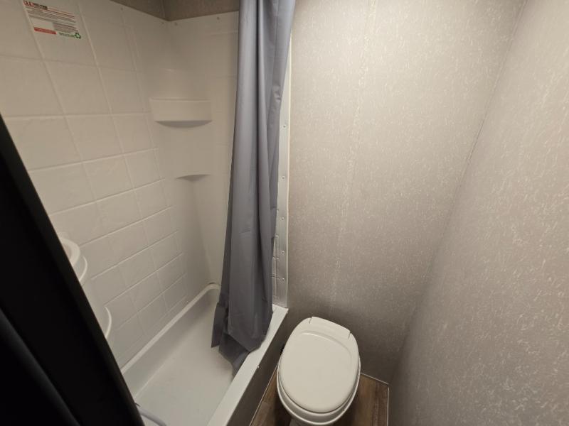 Private Bathroom: Includes a toilet and shower, providing convenience and privacy on the road.