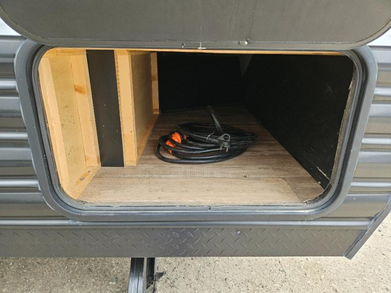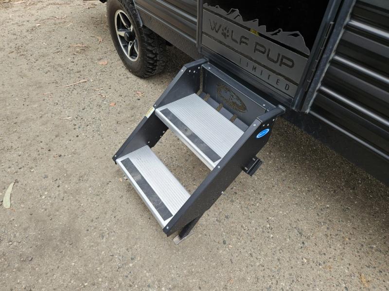 You are going to love the journeys you'll take and memories you'll make with the Forest River Cherokee Wolf Pup toy hauler and travel trailer! The back-up camera system is going to make it very easy to maneuver into the campsite, and the outside shower with hot/cold water will help you clean up while you are outside playing. The stereo has interior/exterior speakers so that you can listen to your music from just about anywhere, and you even get a Cherokee Total Control app and remote control system so that you can be in charge of your trailer's functions without much effort. The Cherokee Wolf Pup has a seamless roofing membrane with heat reflectivity, and the outside storage door is going to allow you to bring a little extra gear.