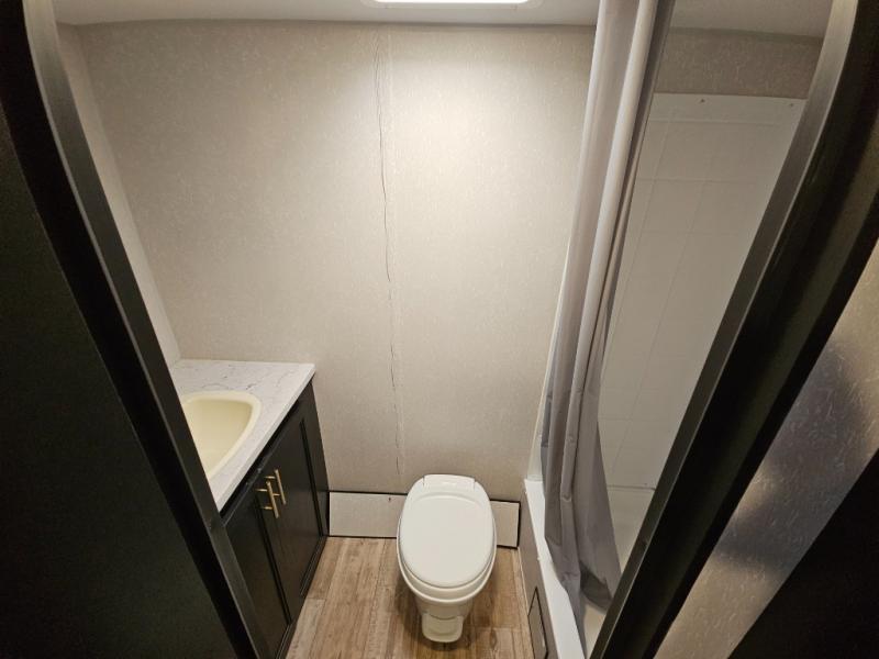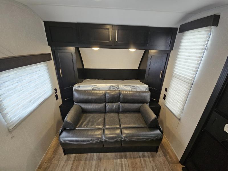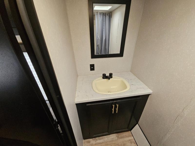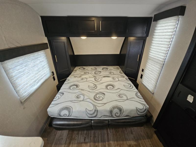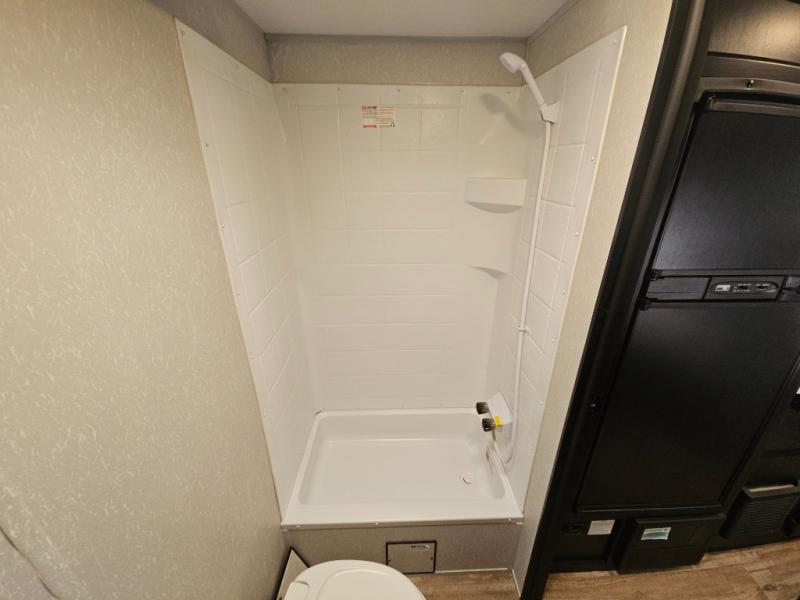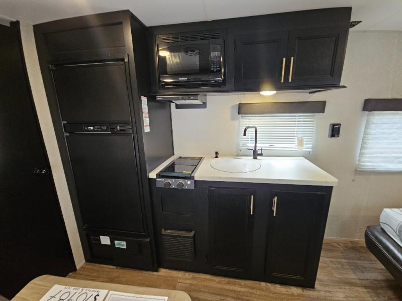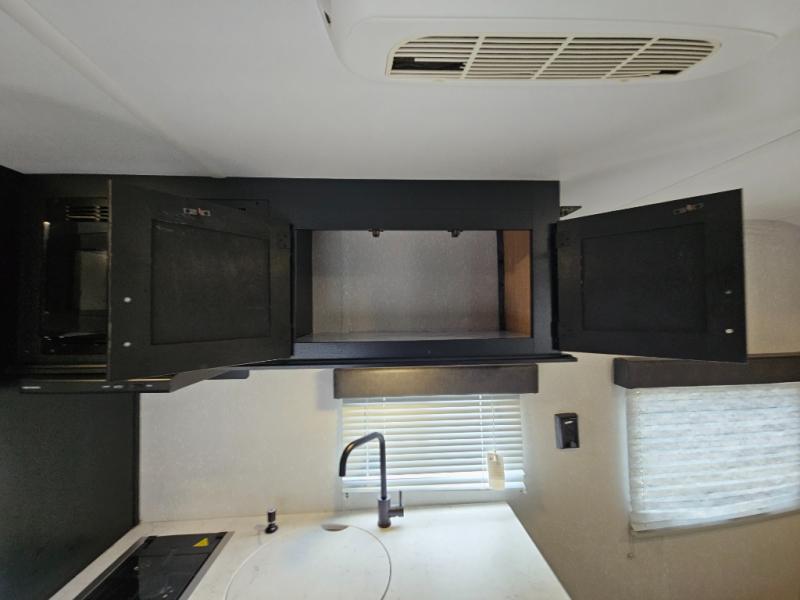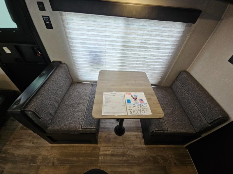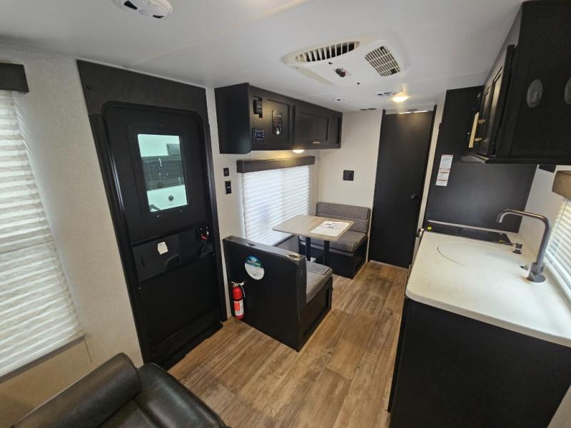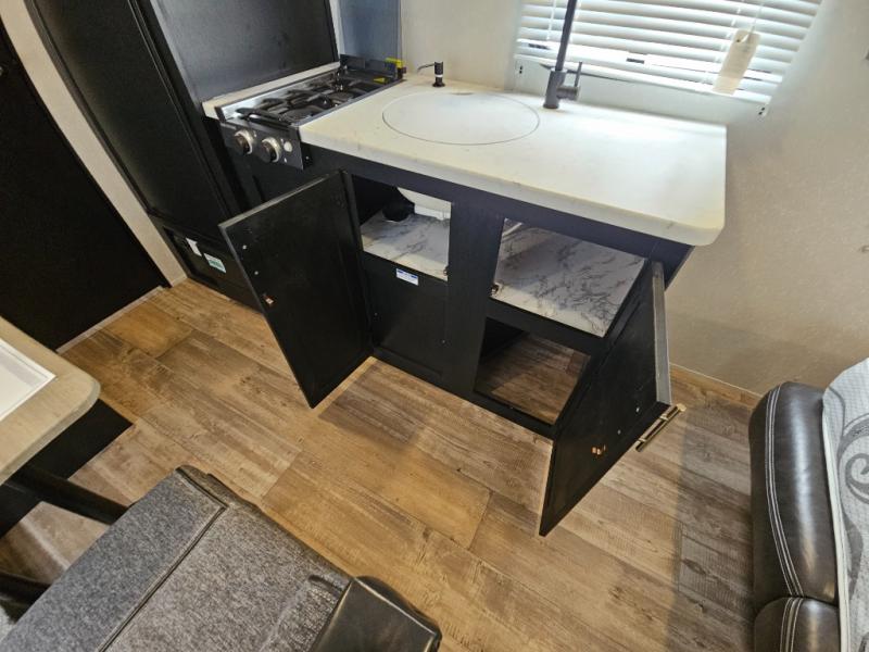 Whether you are a couple or a family that enjoys camping with your own accommodations, you will enjoy this Cherokee Wolf Pup travel trailer. From the Cherokee Sleep System with storage on each side and above to the dinette that doubles as sleeping space for your child, you can sleep on your own sheets each night. The full bathroom allows you to skip the public facilities, and the high-output cooktop and microwave will allow you to cook inside whenever you like. You will also find storage throughout the inside as well as along the exterior for your outdoor gear.