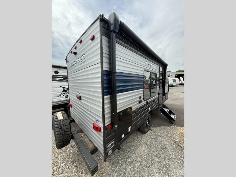Whether you are a couple or a family that enjoys camping with your own accommodations, you will enjoy this Cherokee Wolf Pup travel trailer. From the Cherokee Sleep System with storage on each side and above to the dinette that doubles as sleeping space for your child, you can sleep on your own sheets each night. The full bathroom allows you to skip the public facilities, and the high-output cooktop and microwave will allow you to cook inside whenever you like. You will also find storage throughout the inside as well as along the exterior for your outdoor gear.