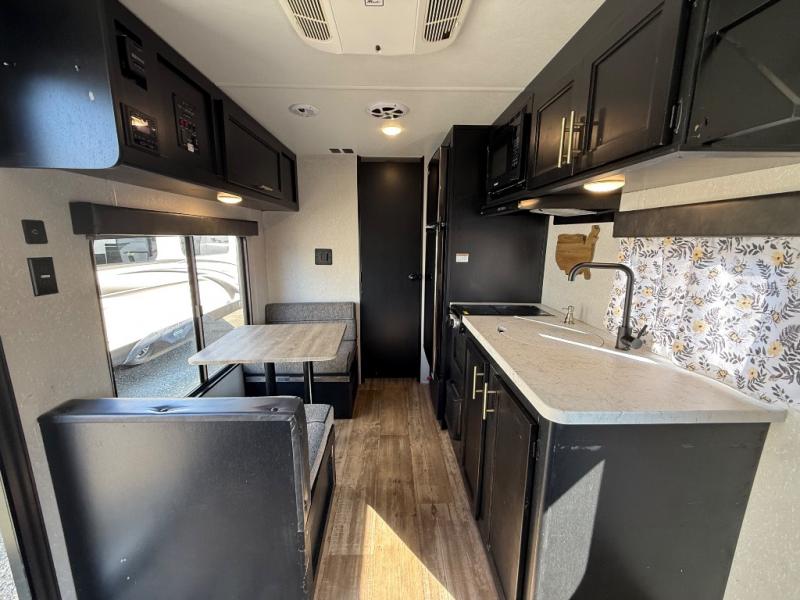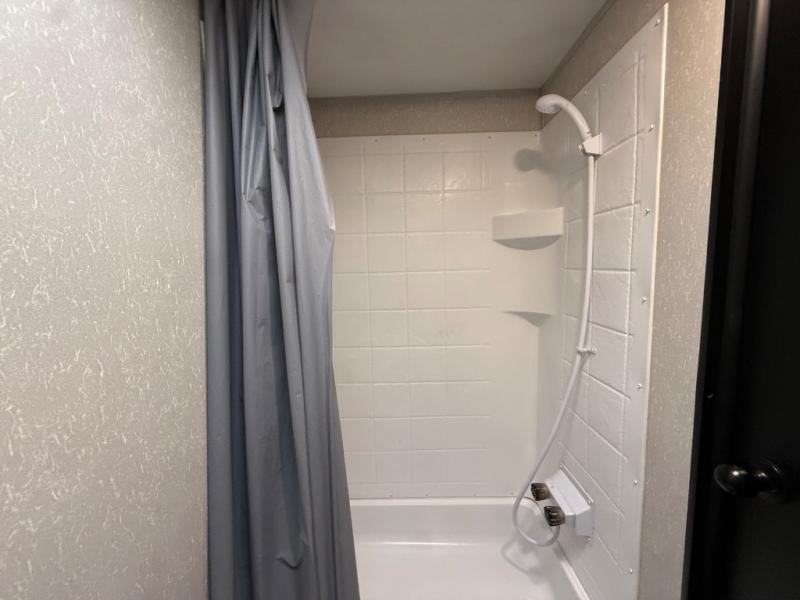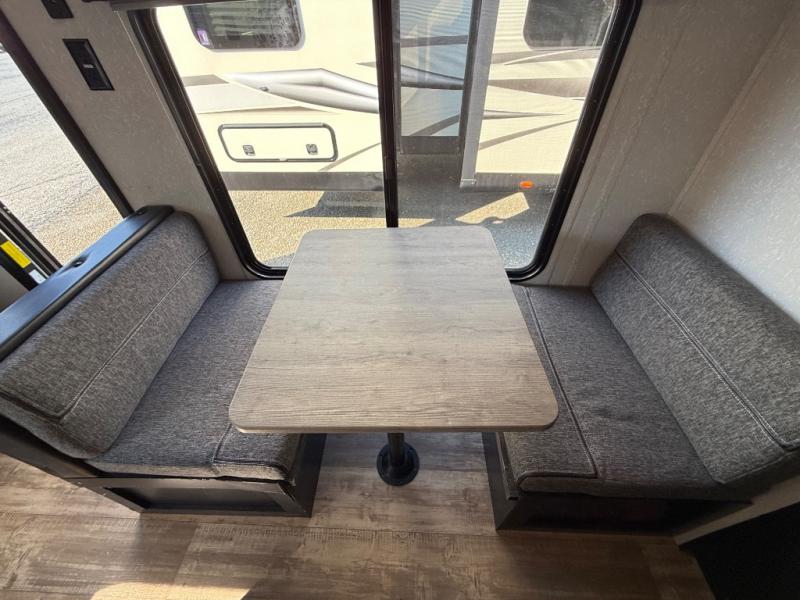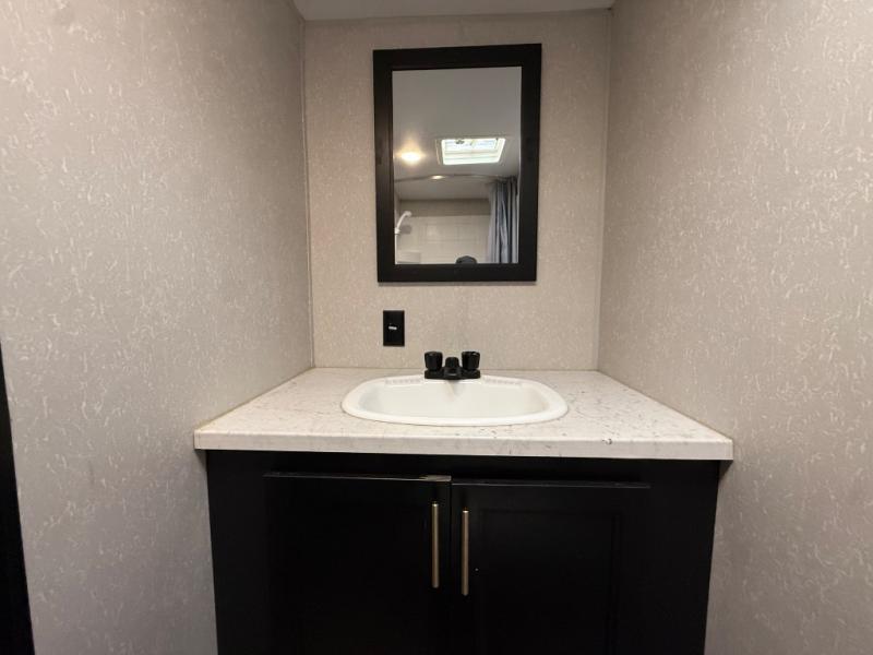 Whether you are a couple or a family that enjoys camping with your own accommodations, you will enjoy this trailer. From the Cherokee Sleep System with storage on each side and above, and the dinette that doubles as sleeping space for the kiddo, you can sleep on your own sheets each night. The full bathroom allows you to skip the public facilities, and the kitchen amenities will allow you to cook inside whenever you like. You will also find storage throughout the inside as well as along the exterior for your outdoor gear.