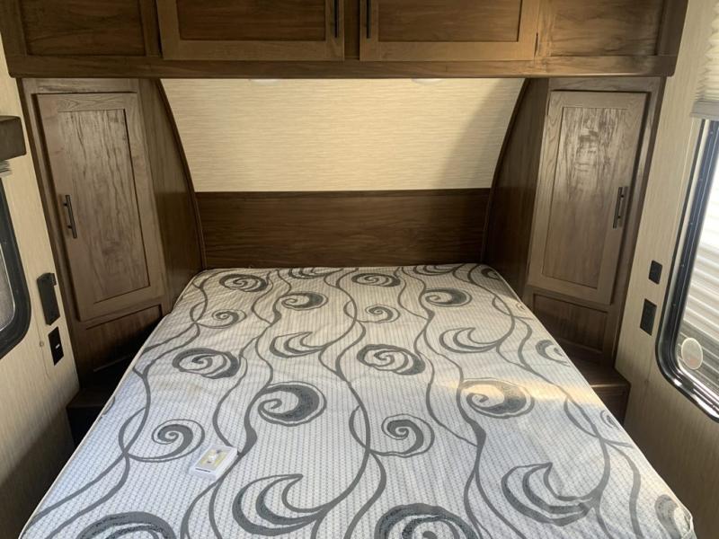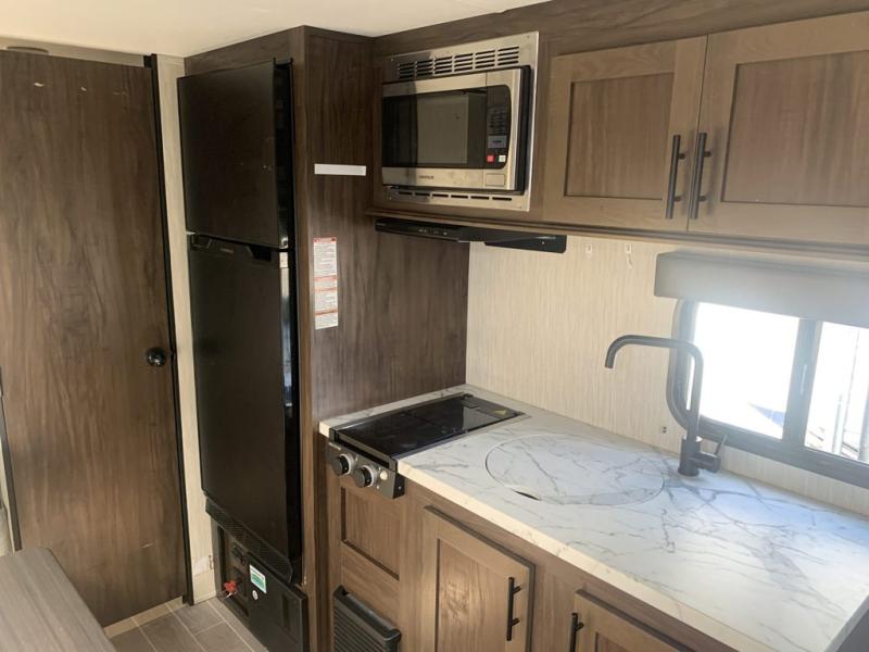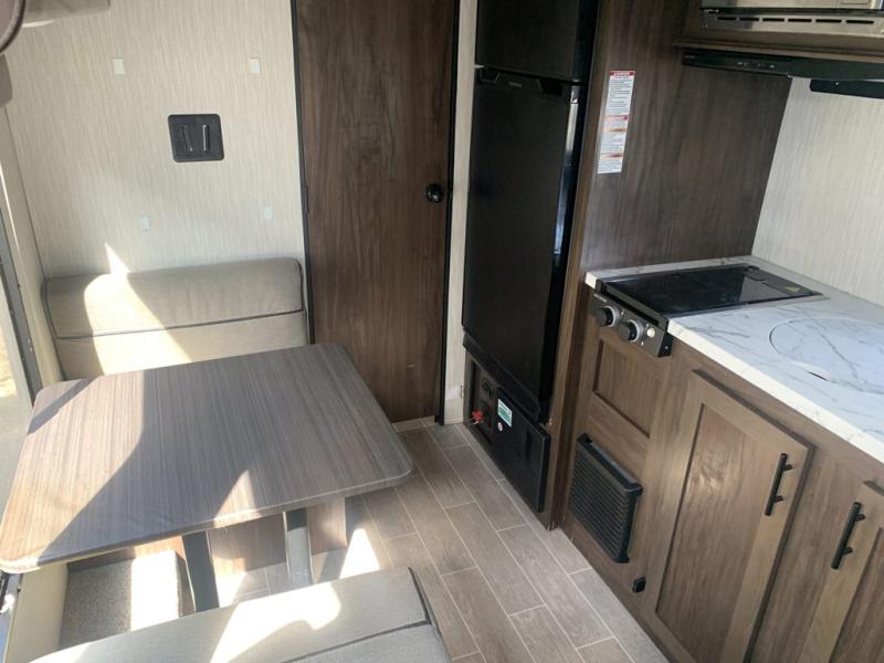 Whether you are a couple or a family that enjoys camping with your own accommodations, you will enjoy this Cherokee Wolf Pup travel trailer. From the Cherokee Sleep System with storage on each side and above to the dinette that doubles as sleeping space for your child, you can sleep on your own sheets each night. The full bathroom allows you to skip the public facilities, and the high-output cooktop and microwave will allow you to cook inside whenever you like. You will also find storage throughout the inside as well as along the exterior for your outdoor gear.