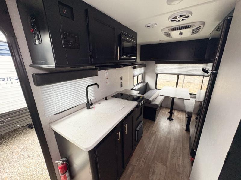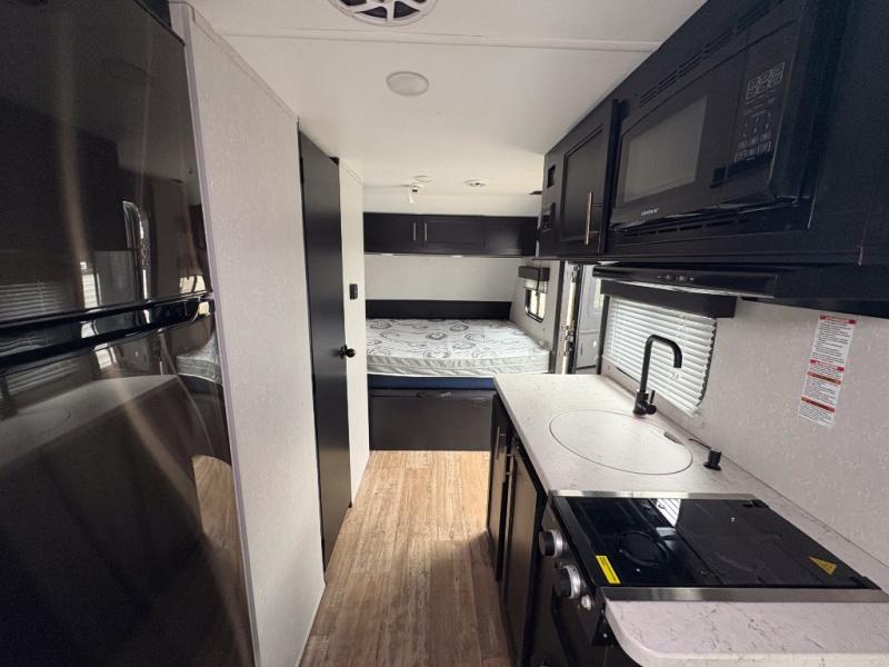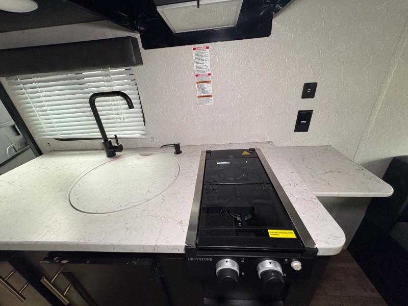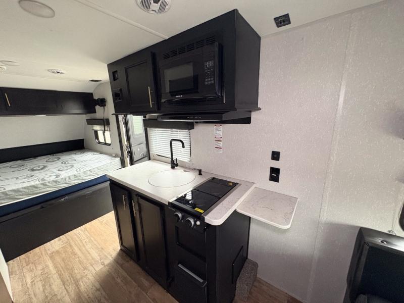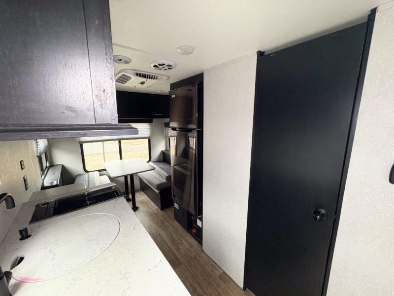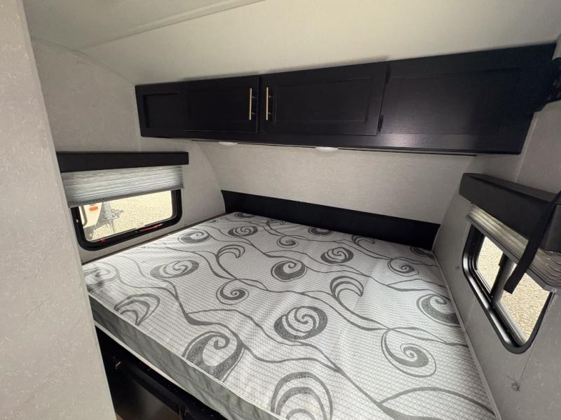 What a fun time you will have exploring the country with this Cherokee Wolf Pup travel trailer! A private bathroom provides you with a toilet and radius shower so that you can stay clean all throughout your journeys, and a queen-size bed gives you a place to relax at the end of a long day. You can use the booth dinette for both dining and sleeping, and if you're craving a grilled cheese sandwich, use the high-output cooktop to get one ready at any time. And don't forget about the extra gear that you stored away in the outside storage!