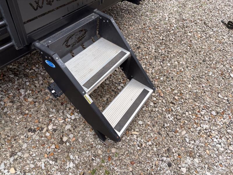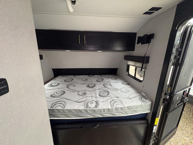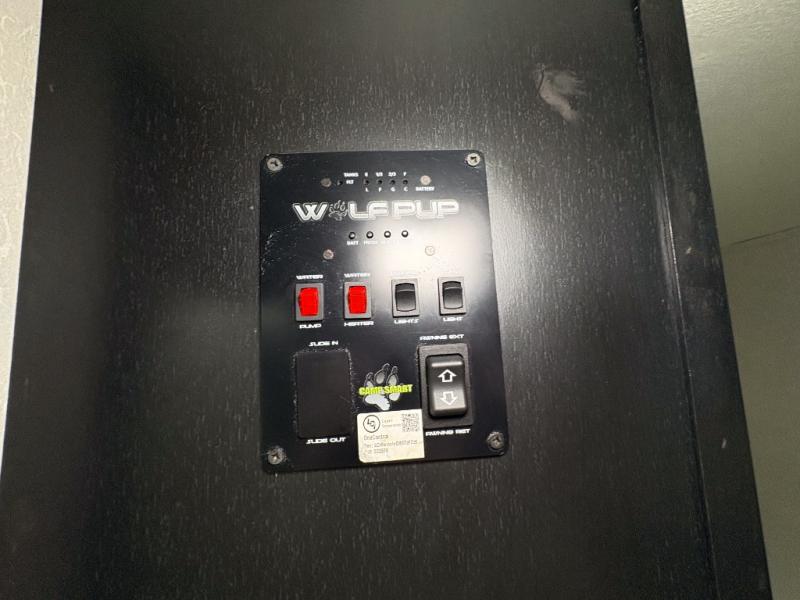 You are going to love the journeys you'll take and memories you'll make with the Forest River Cherokee Wolf Pup toy hauler and travel trailer! The back-up camera system is going to make it very easy to maneuver into the campsite, and the outside shower with hot/cold water will help you clean up while you are outside playing. The stereo has interior/exterior speakers so that you can listen to your music from just about anywhere, and you even get a Cherokee Total Control app and remote control system so that you can be in charge of your trailer's functions without much effort. The Cherokee Wolf Pup has a seamless roofing membrane with heat reflectivity, and the outside storage door is going to allow you to bring a little extra gear.