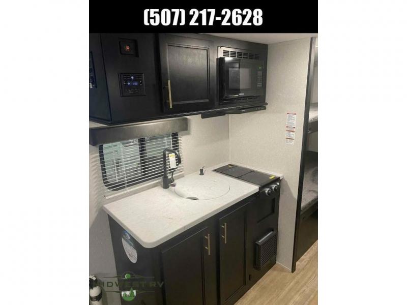 Get ready for some comfortable accommodations after you play outdoors with your RV friends at your favorite state park campsite with this Cherokee Wolf Pup travel trailer. You can sit and talk under the power awning all night thanks to the LED light strip, or you can play games at the U-shaped dinette back inside. The dinette rests on the single slide, and it also doubles as extra sleeping space if your kids' friends want to stay the night. Everyone can enjoy some privacy when getting ready in the bathroom, and the chef will love having a high-output cooktop and microwave to make meals and snacks as well as a sink and counter space to clean up everything afterwards.