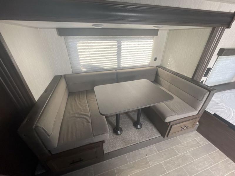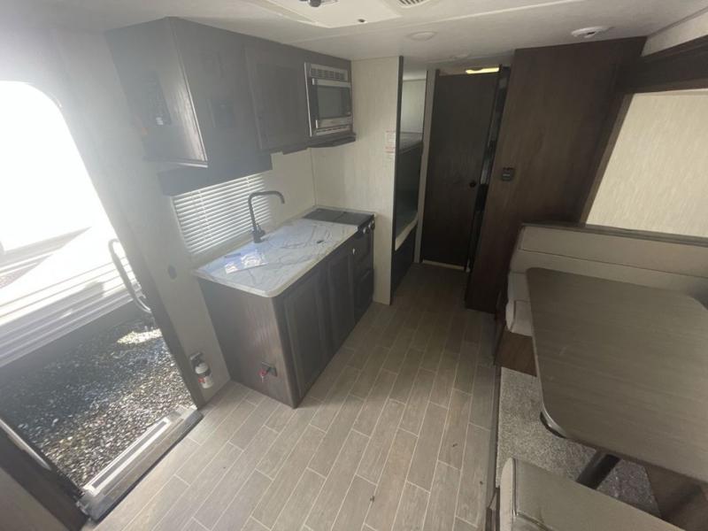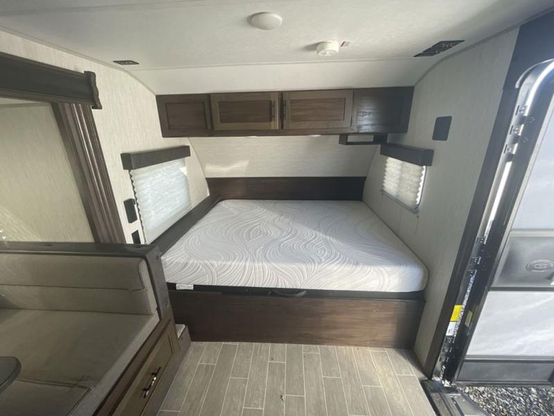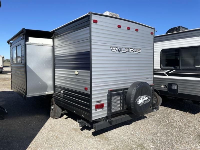 Get ready for some comfortable accommodations after you play outdoors with your RV friends at your favorite state park campsite with this Cherokee Wolf Pup travel trailer. You can sit and talk under the power awning all night thanks to the LED light strip, or you can play games at the U-shaped dinette back inside. The dinette rests on the single slide, and it also doubles as extra sleeping space if your kids' friends want to stay the night. Everyone can enjoy some privacy when getting ready in the bathroom, and the chef will love having a high-output cooktop and microwave to make meals and snacks as well as a sink and counter space to clean up everything afterwards.