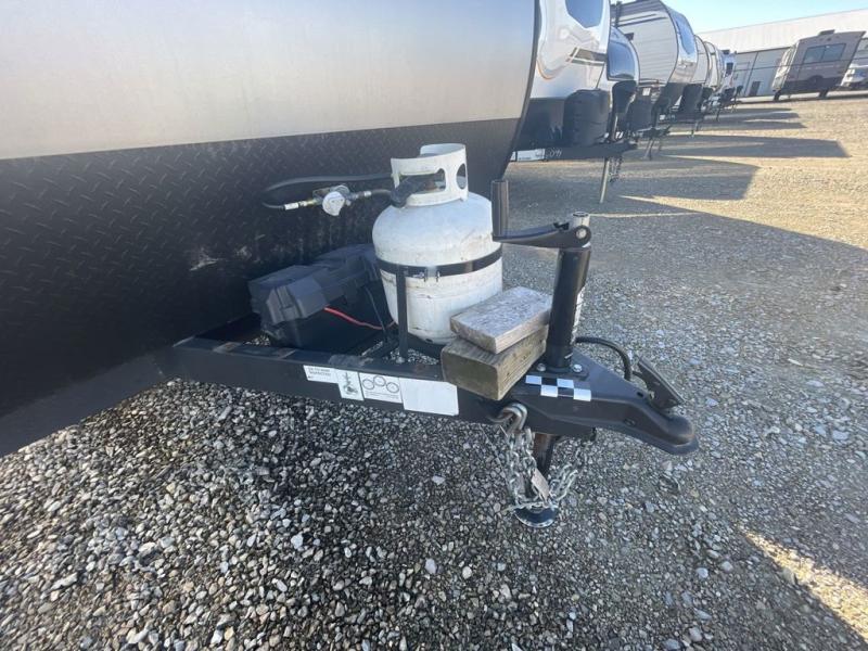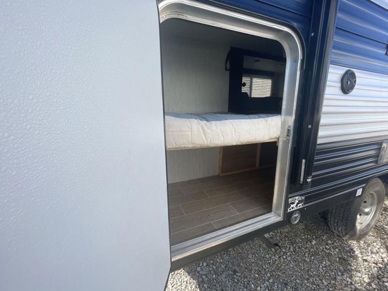 You are going to love the journeys you'll take and memories you'll make with the Forest River Cherokee Wolf Pup toy hauler and travel trailer! The back-up camera system is going to make it very easy to maneuver into the campsite, and the outside shower with hot/cold water will help you clean up while you are outside playing. The stereo has interior/exterior speakers so that you can listen to your music from just about anywhere, and you even get a Cherokee Total Control app and remote control system so that you can be in charge of your trailer's functions without much effort. The Cherokee Wolf Pup has a seamless roofing membrane with heat reflectivity, and the outside storage door is going to allow you to bring a little extra gear.
