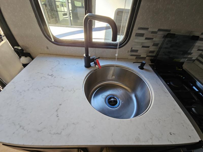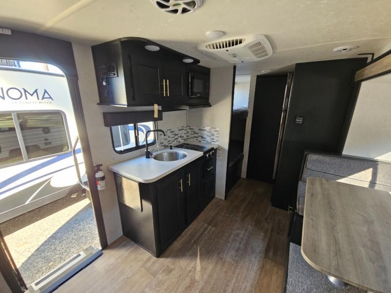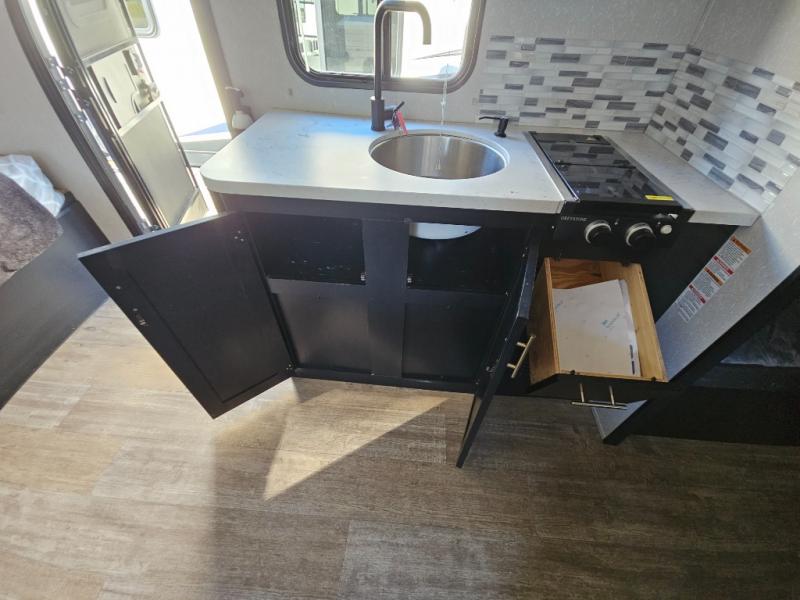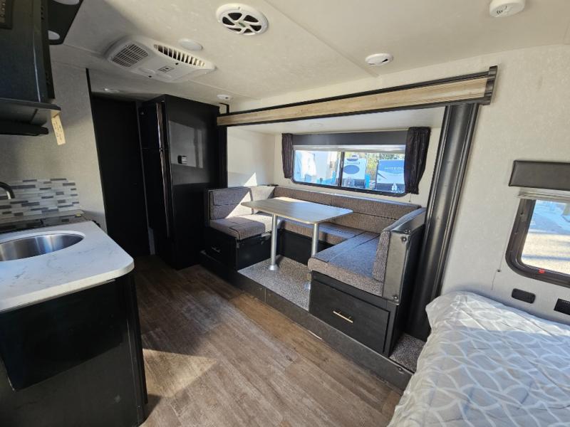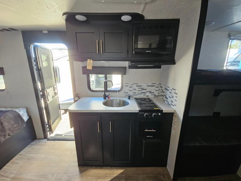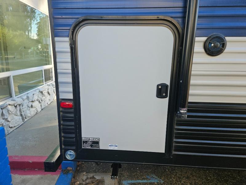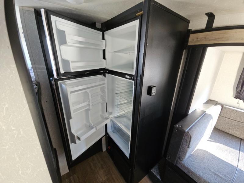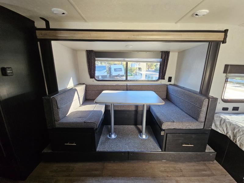 Get ready for some comfortable accommodations after you play outdoors with your RV friends at your favorite state park campsite with this Cherokee Wolf Pup travel trailer. You can sit and talk under the power awning all night thanks to the LED light strip, or you can play games at the U-shaped dinette back inside. The dinette rests on the single slide, and it also doubles as extra sleeping space if your kids' friends want to stay the night. Everyone can enjoy some privacy when getting ready in the bathroom, and the chef will love having a high-output cooktop and microwave to make meals and snacks as well as a sink and counter space to clean up everything afterwards.