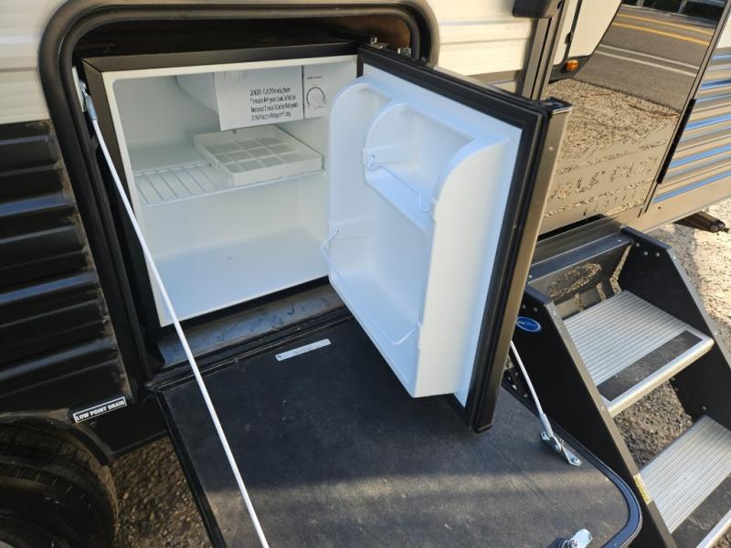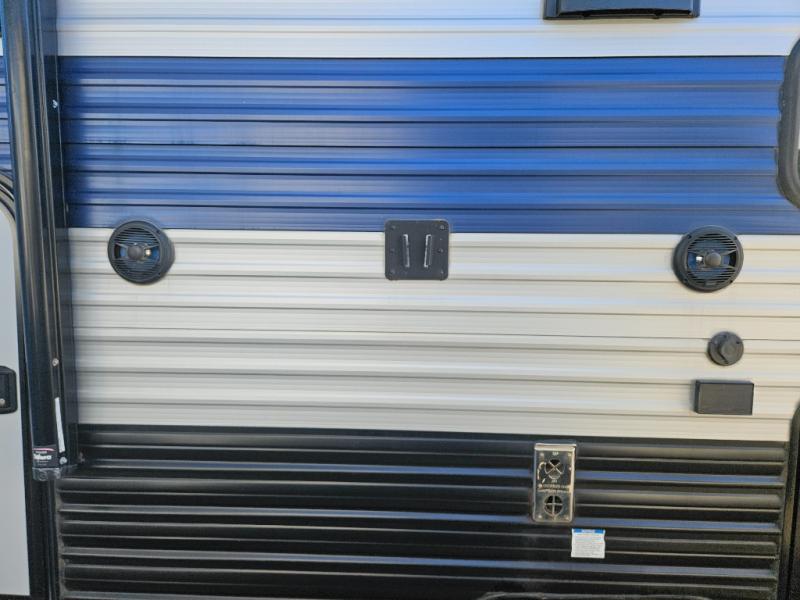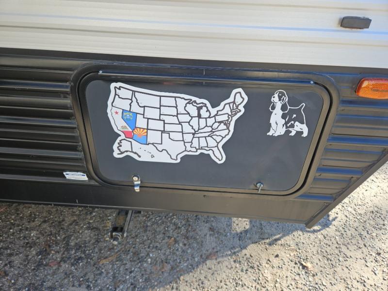 You are going to love the journeys you'll take and memories you'll make with the Forest River Cherokee Wolf Pup toy hauler and travel trailer! The back-up camera system is going to make it very easy to maneuver into the campsite, and the outside shower with hot/cold water will help you clean up while you are outside playing. The stereo has interior/exterior speakers so that you can listen to your music from just about anywhere, and you even get a Cherokee Total Control app and remote control system so that you can be in charge of your trailer's functions without much effort. The Cherokee Wolf Pup has a seamless roofing membrane with heat reflectivity, and the outside storage door is going to allow you to bring a little extra gear.