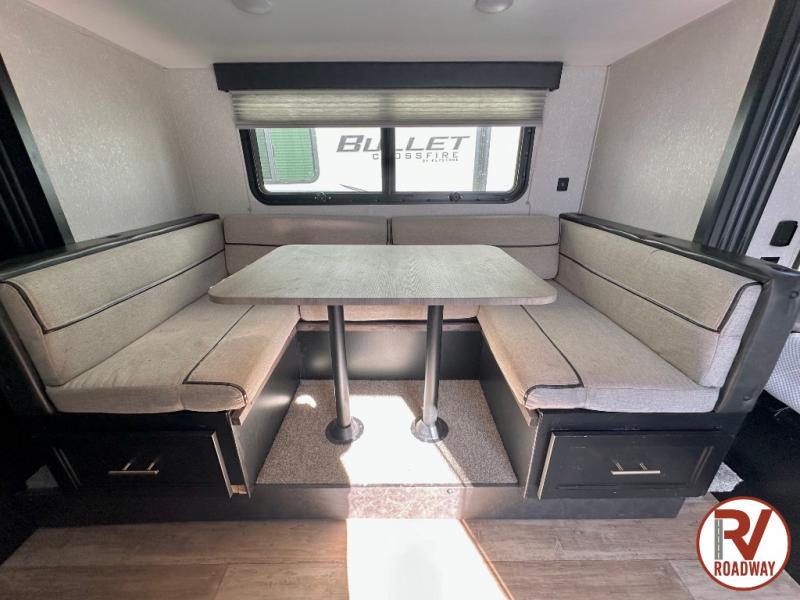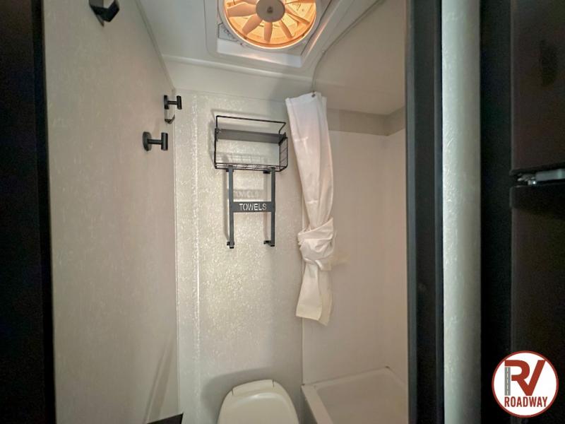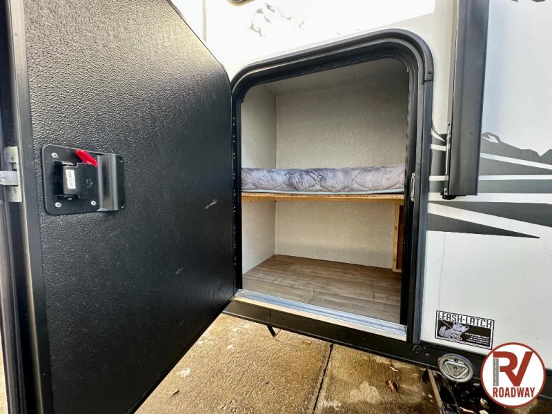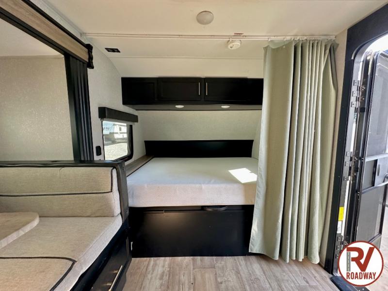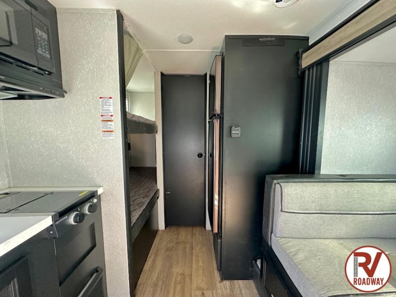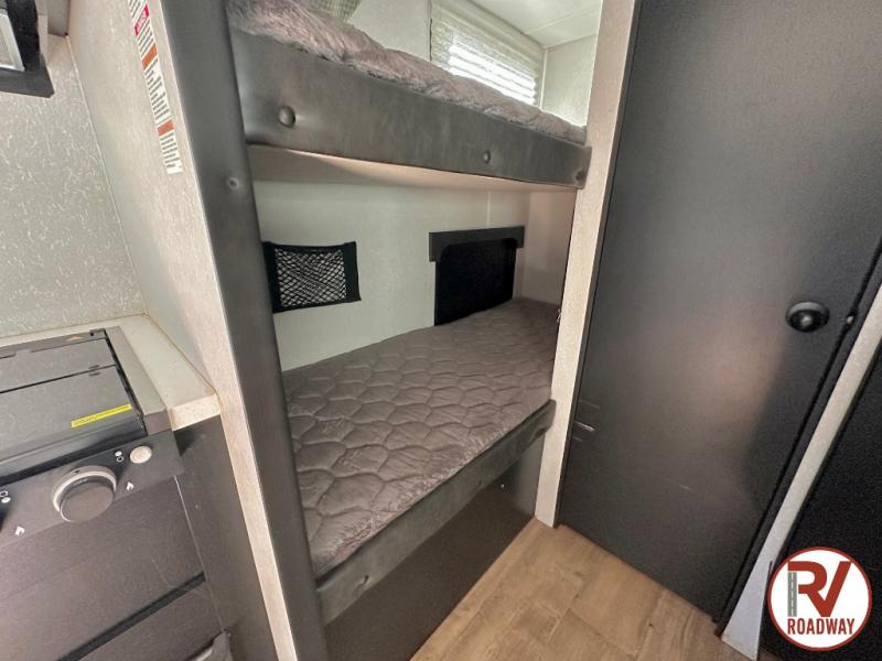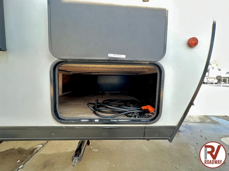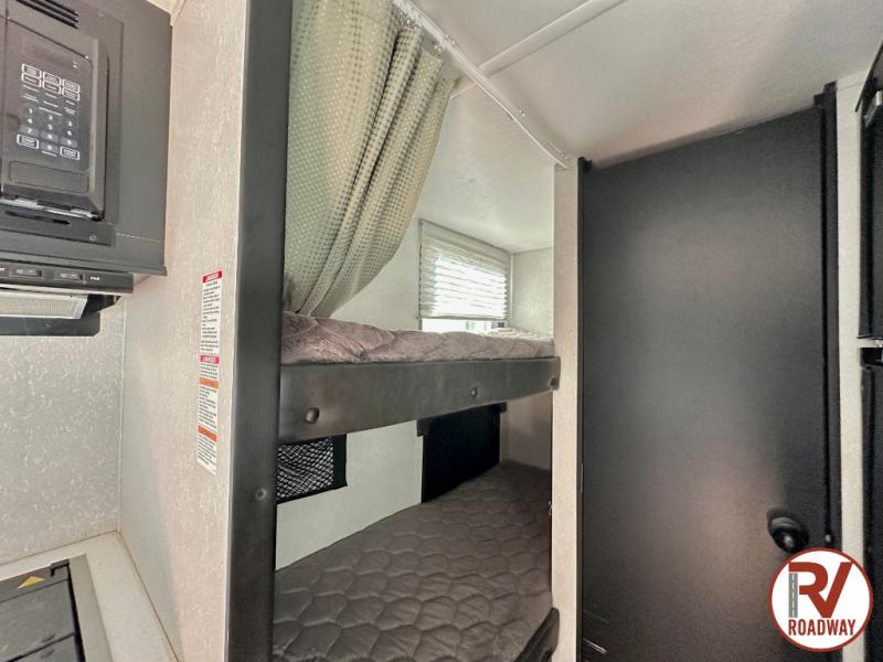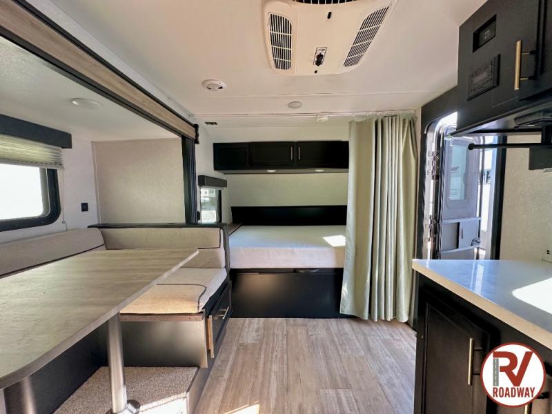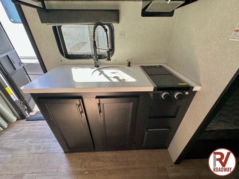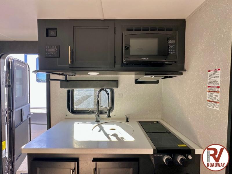Get ready for some comfortable accommodations after you play outdoors with your RV friends at your favorite state park campsite with this Cherokee Wolf Pup Black Label travel trailer. You can sit and talk under the power awning all night thanks to the LED light strip at the awning, or you can play games at the U-shaped dinette slide out inside. The dinette also doubles as extra sleeping space if your kids' friends want to stay the night, and everyone can enjoy some privacy when getting ready in the bathroom that includes a toilet and shower. The chef will love having a cooktop and microwave to make meals and snacks, as well as a round sink and counter space to clean up everything afterwards.