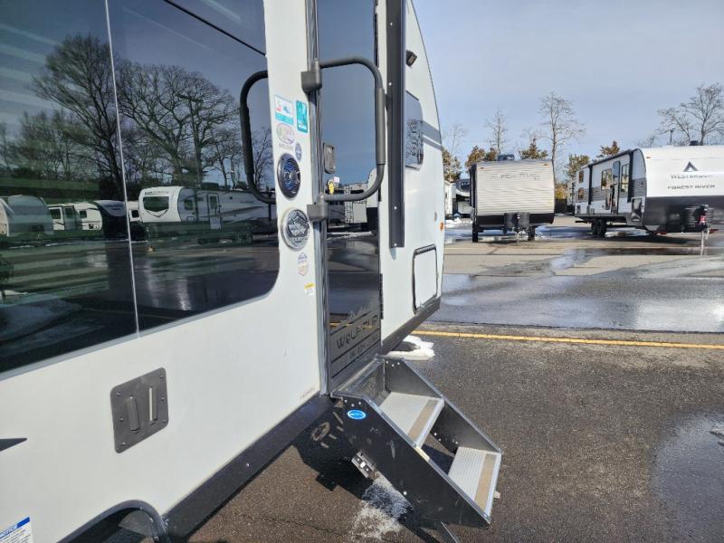 As you contemplate which adventure is next on your list, make sure you include the Forest River Cherokee Wolf Pup Black Label travel trailer or toy hauler in your planning! Since these units are lightweight and easy to tow, it won't be a burden to transport them to the campsite, yet they still come with a wide array of features to make your journey comfortable. You'll find four stabilizer jacks to keep your trailer secure after you've set everything up, and the outside shower with hot/cold water is going to be beneficial for rinsing off your muddy feet or your dog's paws. Some of the features that are unique to the Black Label portion are the thermo-foil arctic insulation, pillowtop mattress, gel-coated fiberglass exterior, battery minder, and oversized bunk pads.