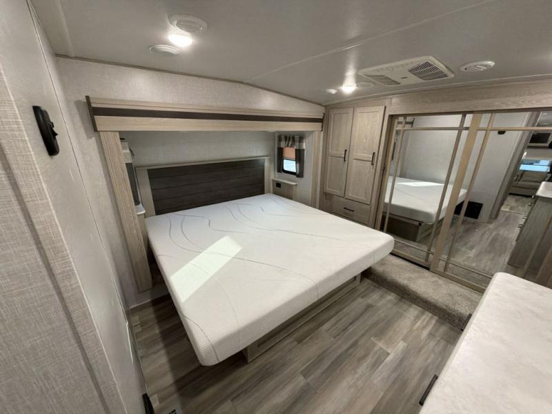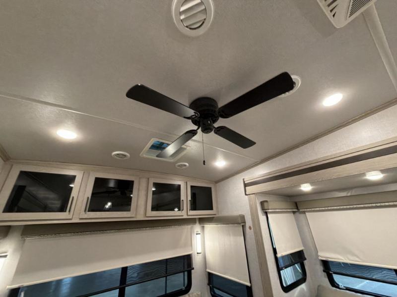With each Forest River Flagstaff Classic fifth wheel or travel trailer you begin with a fully aluminum frame for lightweight towing, a vacuum laminated one piece roof and walls, an enclosed underbelly to be able to travel all year long, tinted bonded frameless windows for scenic views, and a fiberglass exterior with a high gloss finish. You will feel right at home with the comfortable furniture, the full kitchen amenities with solid surface countertops, the hidden hinge cabinet doors and residential full extension metal soft close drawer guides, plus the spacious interior and generous storage space in every Flagstaff Classic. Make your selection and enjoy the views either outdoors or inside through the many windows!