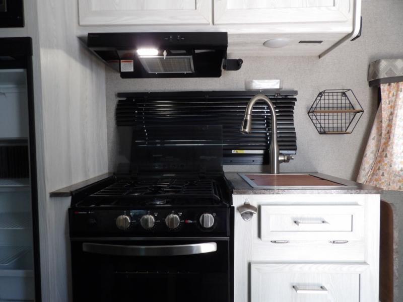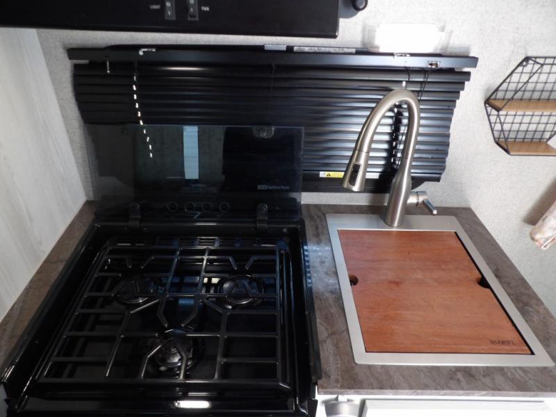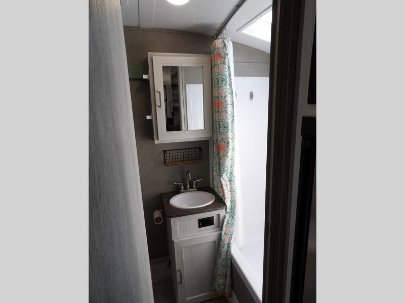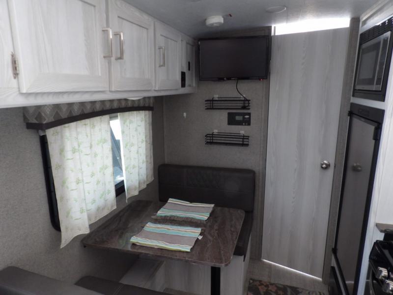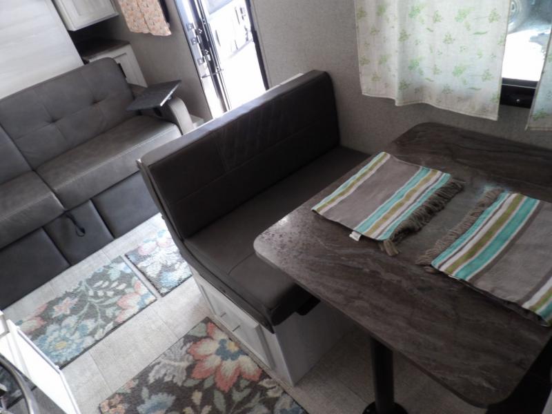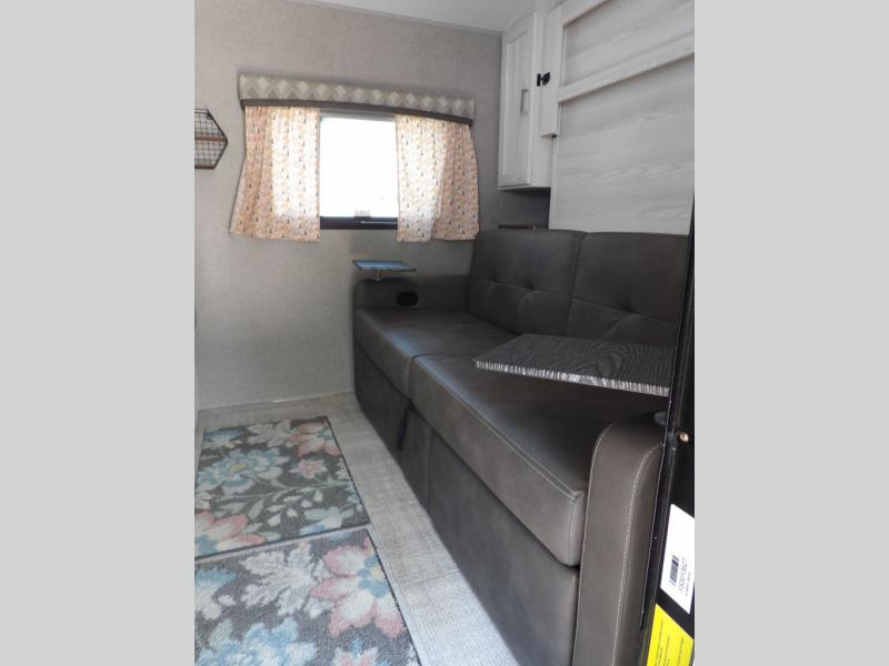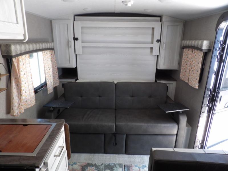 Ready, set, camp! For the camping enthusiast that appreciates convenience and full amenities, this Flagstaff E-Pro travel trailer is the one for you! You get to choose if you want to sit on the sofa or sleep on the Murphy bed whenever you like. You also have a booth dinette for extra seating and sleeping space. The rear full bath allows you to wash up after a fun day outdoors without having to use the public facilities, and you can cook inside on the cooktop and in the microwave or outside on the exterior griddle.