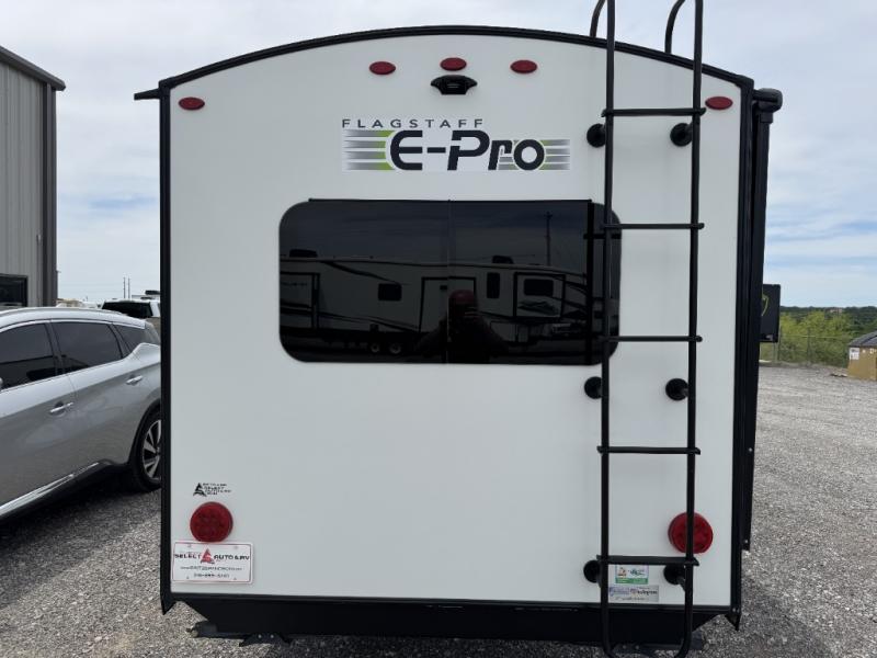 Forest River has custom designed each one of these Flagstaff E-Pro travel trailers and toy haulers to be towed by your fuel-efficient, smaller SUV! They may be light in weight, but they are heavy in features and options. Some of these features include an AM/FM Bluetooth stereo with USB ports to play your favorite tunes, a 190W roof-mount solar panel, and a Shower Miser water saver on most models. Their six-sided aluminum cage construction, frame-mounted stabilizer jacks, and vacuum laminated roof and walls will hold up through every adventure you throw their way. You even get a Sport Tire & Wheel Package which includes 15" Mud Rover radial tires and a lift kit. Come see all that these models have to offer!