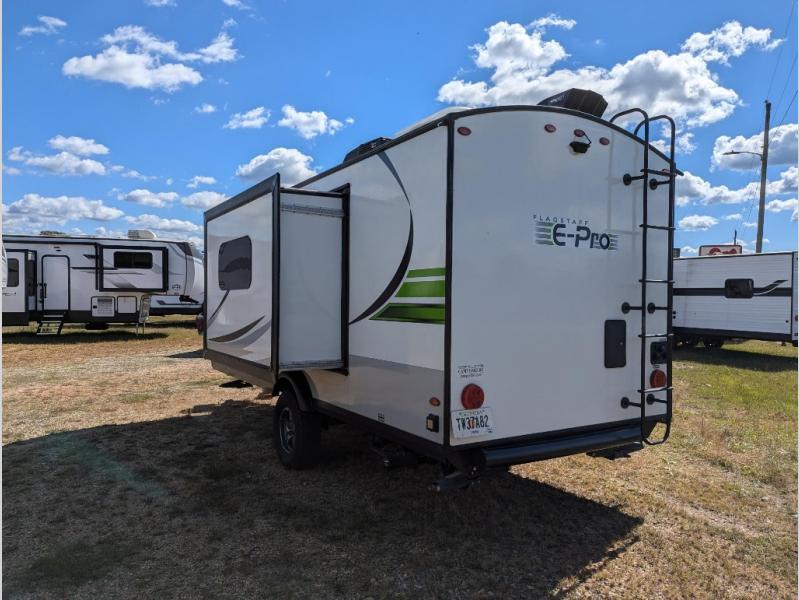Forest River has custom designed each one of these Flagstaff E-Pro travel trailers and toy haulers to be towed by your fuel-efficient, smaller SUV! They may be light in weight, but they are heavy in features and options. Some of these features include an AM/FM Bluetooth stereo with USB ports to play your favorite tunes, a 190W roof-mount solar panel, and a Shower Miser water saver on most models. Their six-sided aluminum cage construction, frame-mounted stabilizer jacks, and vacuum laminated roof and walls will hold up through every adventure you throw their way. You even get a Sport Tire & Wheel Package which includes 15" Mud Rover radial tires and a lift kit. Come see all that these models have to offer!