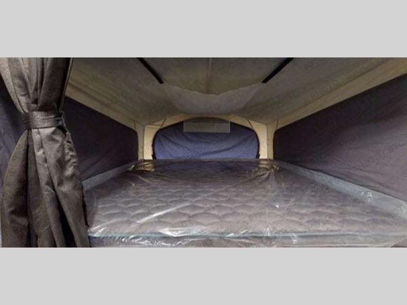 Your family of five or six can enjoy camping above ground in this camper with two tent end beds giving you more interior floor space and a slide out U-shaped dinette. The cook will love having the choice of making meals inside with full amenities including a three-way refrigerator or outside on the slide out kitchen and griddle. And you can dine under the 13' awning or back inside at the dinette. You will find plenty of storage in the cabinets and the shower/cassette toilet with curtain offer a wet bath to stay refreshed the whole trip.