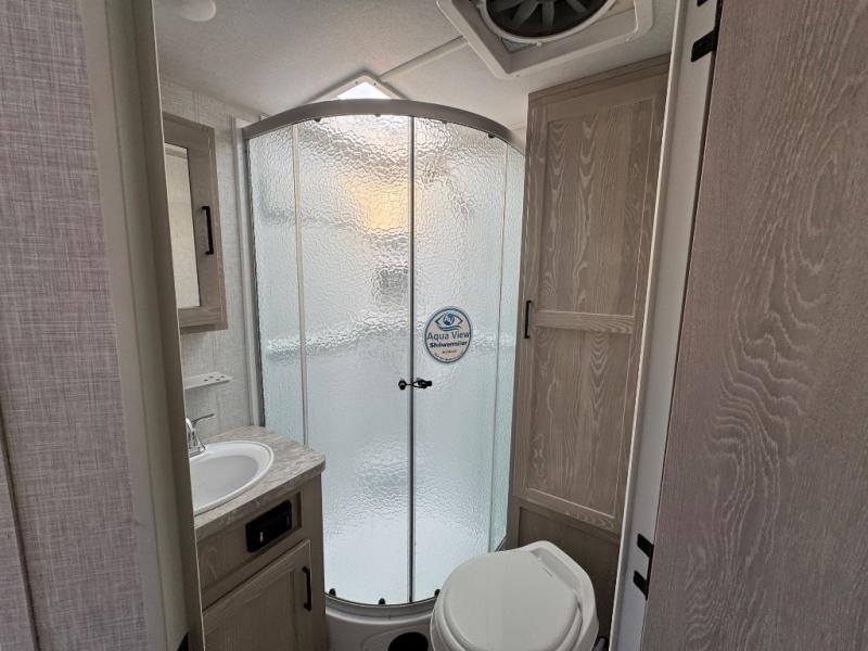 The Forest River Flagstaff Micro Lite travel trailer gives you the freedom to tow with your SUV or Minivan! Even though these trailers are lightweight, they still pack a punch when it comes to accommodating features and comfortable amenities. The Flagstaff Micro Lite has an enclosed underbelly, four frame-mounted stabilizer jacks, Torsion Axle, Rubber-Ryde suspension, a fully aluminum frame, and a lower front diamond plate panel. With its Teton All In One WiFi Booster/LTE prep, multi-zone stereo with DVD/CD/AM/FM/Bluetooth, MP3 player hook-up, and TV antenna with cable and satellite hook-up, you'll have plenty of modern technology to keep you occupied while you're away. Some other features that will make trips easier are the power awning with adjustable rain dump and LED lighting, the outside shower, an outside antifreeze station, and the 2" hitch receiver.