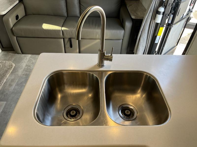 The Forest River Flagstaff Micro Lite travel trailer gives you the freedom to tow with your SUV or Minivan! Even though these trailers are lightweight, they still pack a punch when it comes to accommodating features and comfortable amenities. The Flagstaff Micro Lite has an enclosed underbelly, four frame-mounted stabilizer jacks, Torsion Axle, Rubber-Ryde suspension, a fully aluminum frame, and a lower front diamond plate panel. With its Teton All In One WiFi Booster/LTE prep, multi-zone stereo with DVD/CD/AM/FM/Bluetooth, MP3 player hook-up, and TV antenna with cable and satellite hook-up, you'll have plenty of modern technology to keep you occupied while you're away. Some other features that will make trips easier are the power awning with adjustable rain dump and LED lighting, the outside shower, an outside antifreeze station, and the 2" hitch receiver.