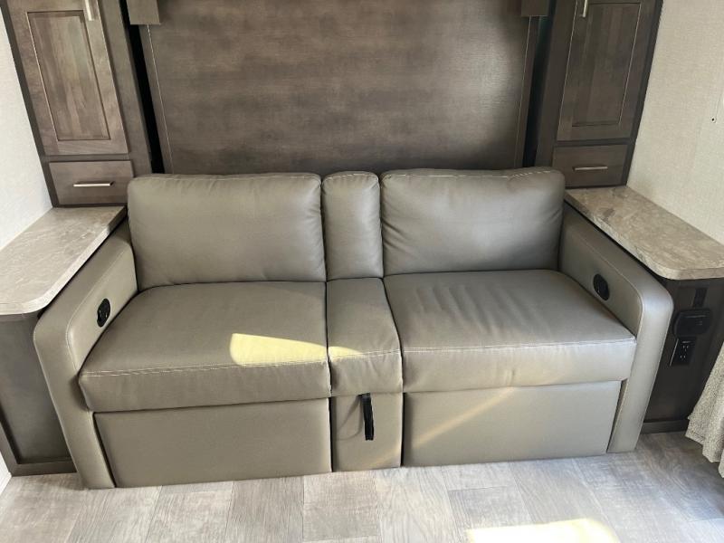 Pack your bags and get ready for your next camping trip with this Flagstaff Micro Lite travel trailer. You will enjoy the space the single slide provides, and within the slide is a U-shaped dinette where you can enjoy your meals. Fold out the Murphy bed each night for a good night's rest, and in the morning you can fold it away and enjoy a cup of coffee on the sofa. This unit features a kitchen with a three-burner cooktop and microwave, and you'll appreciate a pantry for snacks. Bring along the extra lawn chairs in the pass-through storage, and there is also an exterior storage for your luggage or tackle boxes