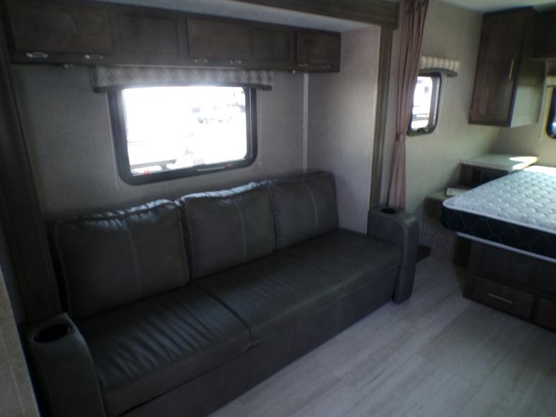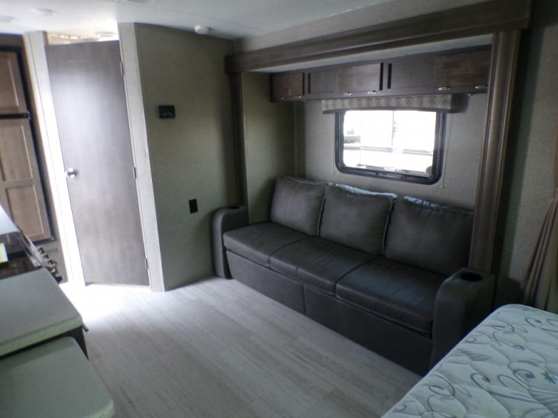 For the couple who is ready to get out and enjoy nature, this Flagstaff Micro Lite travel trailer is ideal for you! This unit has all of the basic amenities, like a rear corner bath with a radius shower and a front RV queen bed that makes for a comfy night's rest. The slide out with the 72" sofa provides extra interior space so that you won't feel cramped. You'll also be able to enjoy your meals here with a table in front of the sofa. After swimming all day working up your appetite, come back to this unit and cook a meal on the three-burner cooktop! This travel trailer features a pass-through storage for your larger camping items, plus an exterior storage to hold the kids' outdoor games.