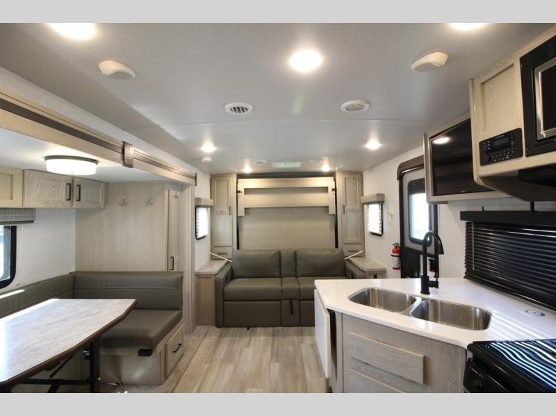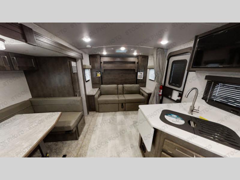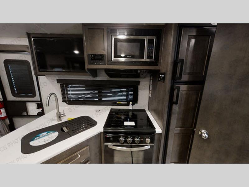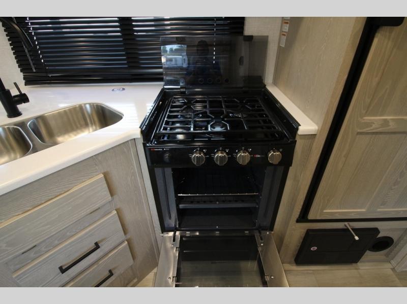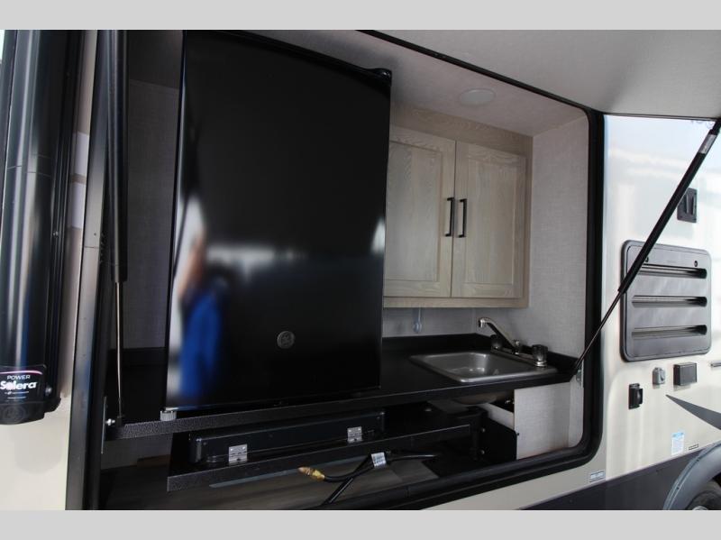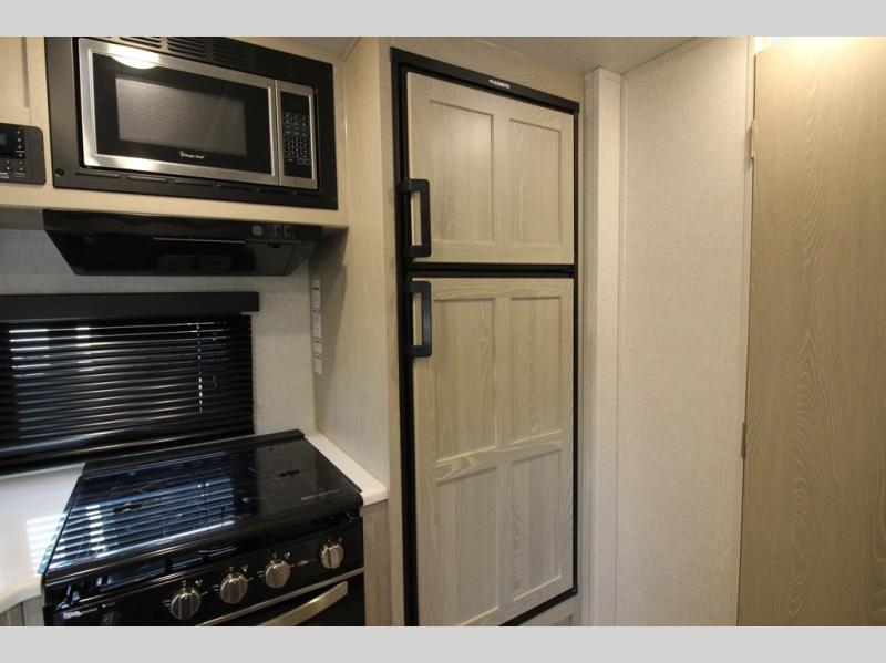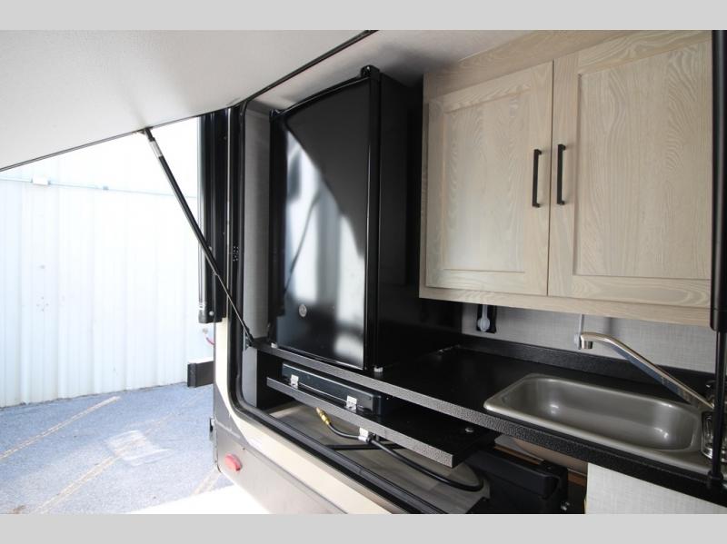 Are you ready to camp at your leisure? If so, then this Flagstaff Micro Lite travel trailer is ideal for you! There is sleeping space for four people in this unit, so you can camp with your kids or even an overnight guest or two. The single slide opens up the floor space so that you won't feel cramped. You'll enjoy a sofa in this model that conveniently converts into a Murphy bed for a good night's rest. This trailer features a kitchen with a three-burner cooktop, a countertop extension, and a double sink which makes clean-up a breeze. Enjoy the evening air when you cook outdoors using the outside kitchen that includes a two-burner cooktop, a sink, and a refrigerator.