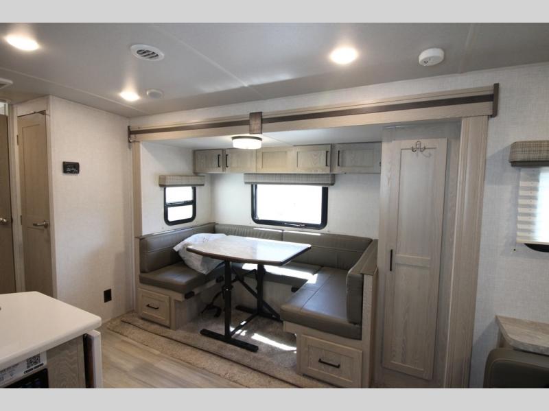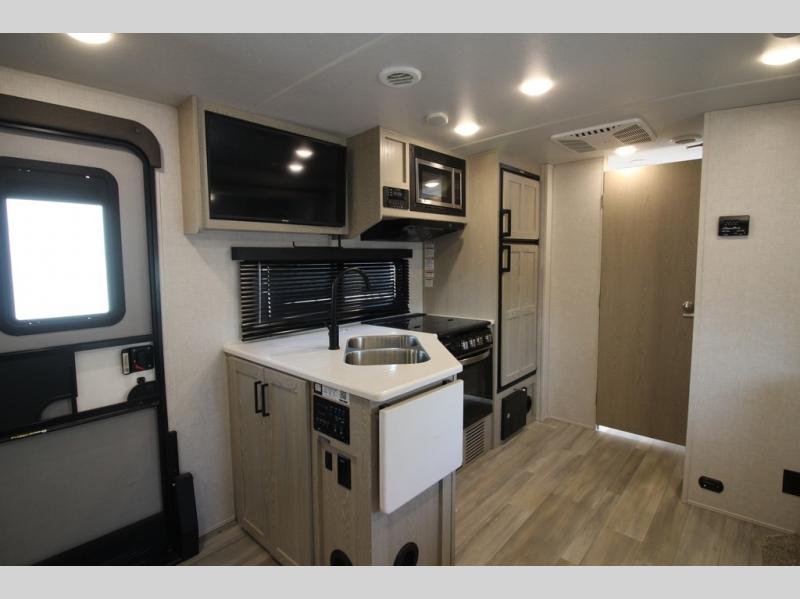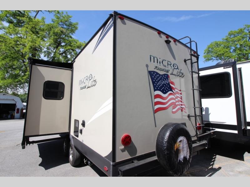 The Forest River Flagstaff Micro Lite travel trailer gives you the freedom to tow with your SUV or Minivan! Even though these trailers are lightweight, they still pack a punch when it comes to accommodating features and comfortable amenities. The Flagstaff Micro Lite has an enclosed underbelly, four frame-mounted stabilizer jacks, Torsion Axle, Rubber-Ryde suspension, a fully aluminum frame, and a lower front diamond plate panel. With its Teton All In One WiFi Booster/LTE prep, multi-zone stereo with DVD/CD/AM/FM/Bluetooth, MP3 player hook-up, and TV antenna with cable and satellite hook-up, you'll have plenty of modern technology to keep you occupied while you're away. Some other features that will make trips easier are the power awning with adjustable rain dump and LED lighting, the outside shower, an outside antifreeze station, and the 2" hitch receiver.