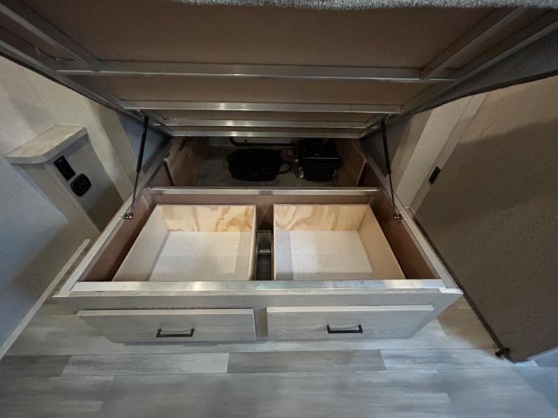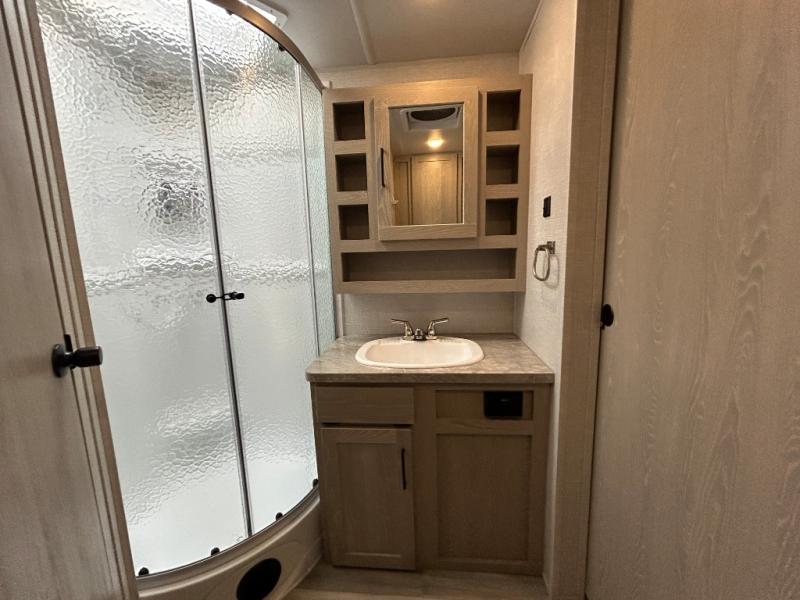 The Forest River Flagstaff Micro Lite travel trailer gives you the freedom to tow with your SUV or Minivan! Even though these trailers are lightweight, they still pack a punch when it comes to accommodating features and comfortable amenities. The Flagstaff Micro Lite has an enclosed underbelly, four frame-mounted stabilizer jacks, Torsion Axle, Rubber-Ryde suspension, a fully aluminum frame, and a lower front diamond plate panel. With its Teton All In One WiFi Booster/LTE prep, multi-zone stereo with DVD/CD/AM/FM/Bluetooth, MP3 player hook-up, and TV antenna with cable and satellite hook-up, you'll have plenty of modern technology to keep you occupied while you're away. Some other features that will make trips easier are the power awning with adjustable rain dump and LED lighting, the outside shower, an outside antifreeze station, and the 2" hitch receiver.