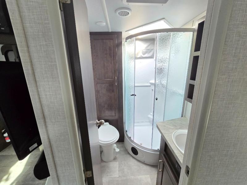 The Forest River Flagstaff Micro Lite travel trailer gives you the freedom to tow with your SUV or Minivan! Even though these trailers are lightweight, they still pack a punch when it comes to accommodating features and comfortable amenities. The Flagstaff Micro Lite has an enclosed underbelly, four frame-mounted stabilizer jacks, Torsion Axle, Rubber-Ryde suspension, a fully aluminum frame, and a lower front diamond plate panel. With its Teton All In One WiFi Booster/LTE prep, multi-zone stereo with DVD/CD/AM/FM/Bluetooth, MP3 player hook-up, and TV antenna with cable and satellite hook-up, you'll have plenty of modern technology to keep you occupied while you're away. Some other features that will make trips easier are the power awning with adjustable rain dump and LED lighting, the outside shower, an outside antifreeze station, and the 2" hitch receiver.