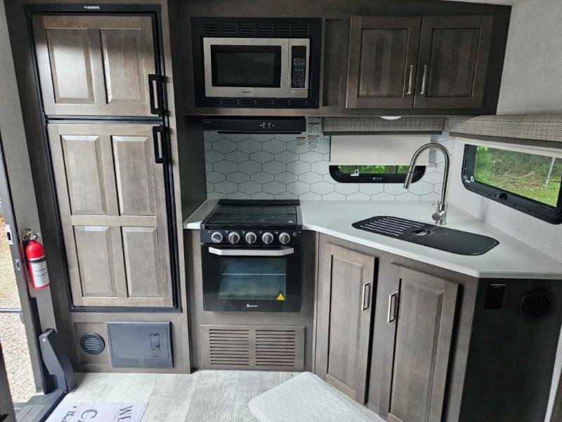 With any Flagstaff Super Lite travel trailer by Forest River you will experience a lightweight RV that is built with a 6 sided aluminum cage construction, vacuum laminated one-piece roof and walls, laminated fiberglass sidewalls, and an enclosed underbelly for four seasons of camping. The interior is just as impressive with a Shower Miser water saver system, hardwood cabinet doors and drawers, undermount double bowl kitchen sink with a residential style faucet, ceiling LED 12 volt interior lighting, and a monitor panel switch station with a OneControl app. Make your selection today!
