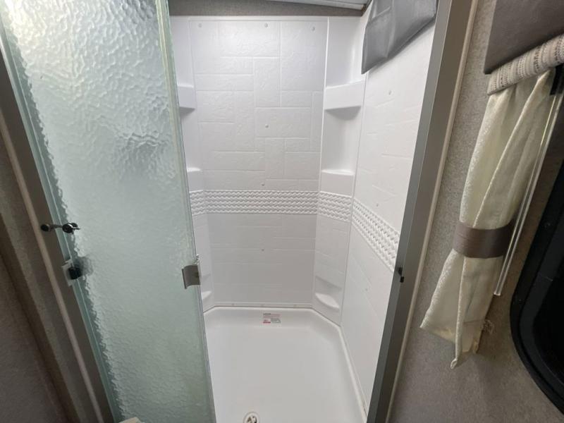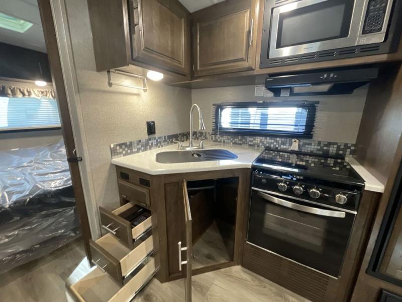 With any Flagstaff Super Lite travel trailer by Forest River you will experience a lightweight RV that is built with a 6 sided aluminum cage construction, vacuum laminated one-piece roof and walls, laminated fiberglass sidewalls, and an enclosed underbelly for four seasons of camping. The interior is just as impressive with a Shower Miser water saver system, hardwood cabinet doors and drawers, undermount double bowl kitchen sink with a residential style faucet, ceiling LED 12 volt interior lighting, and a monitor panel switch station with a OneControl app. Make your selection today!