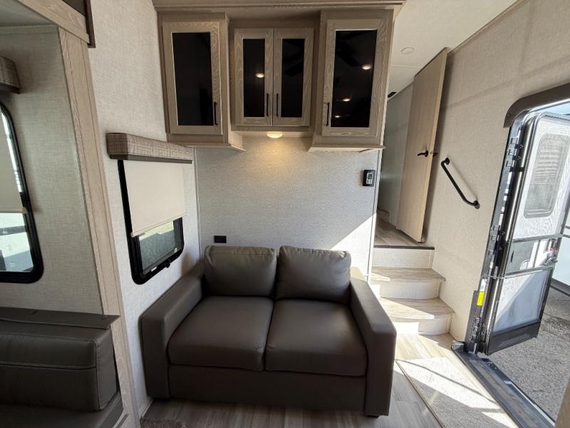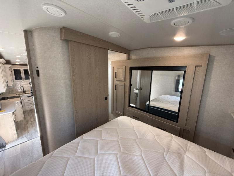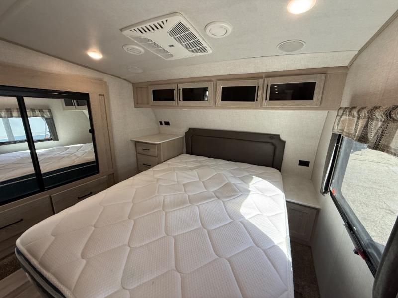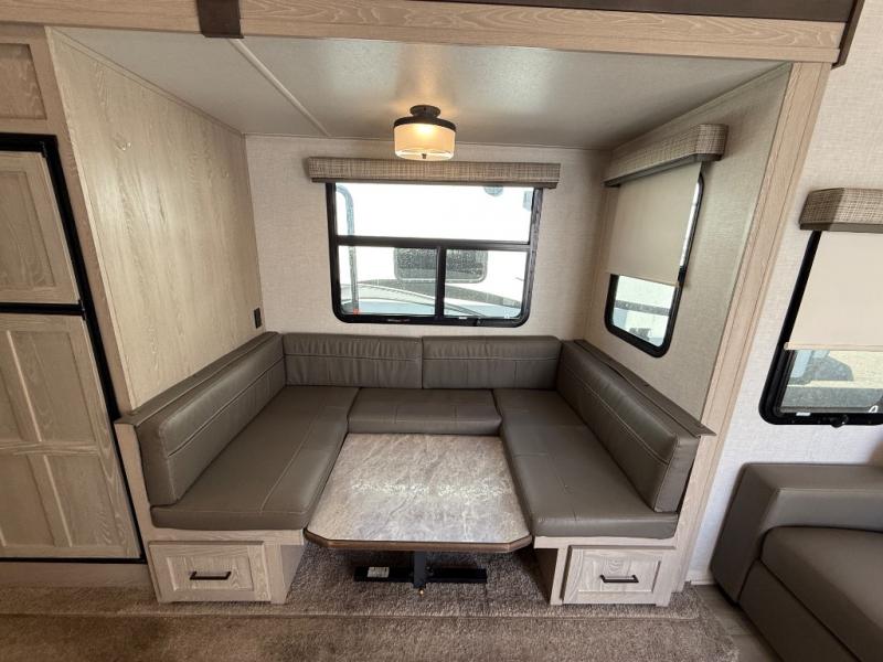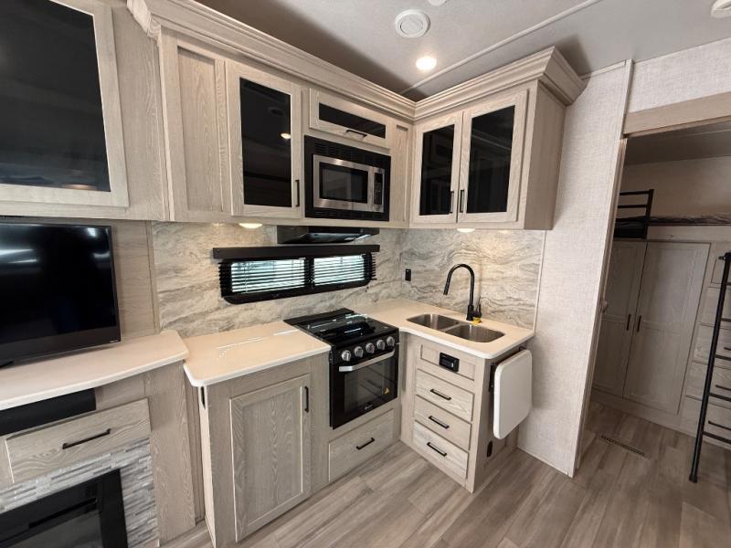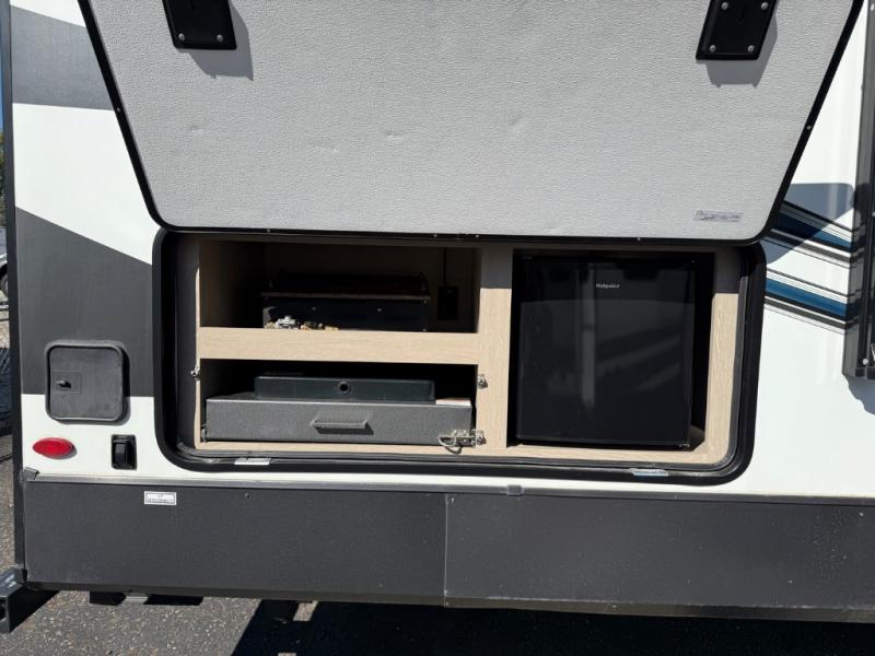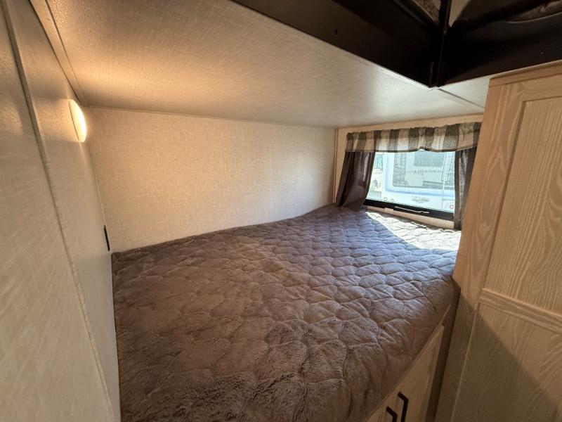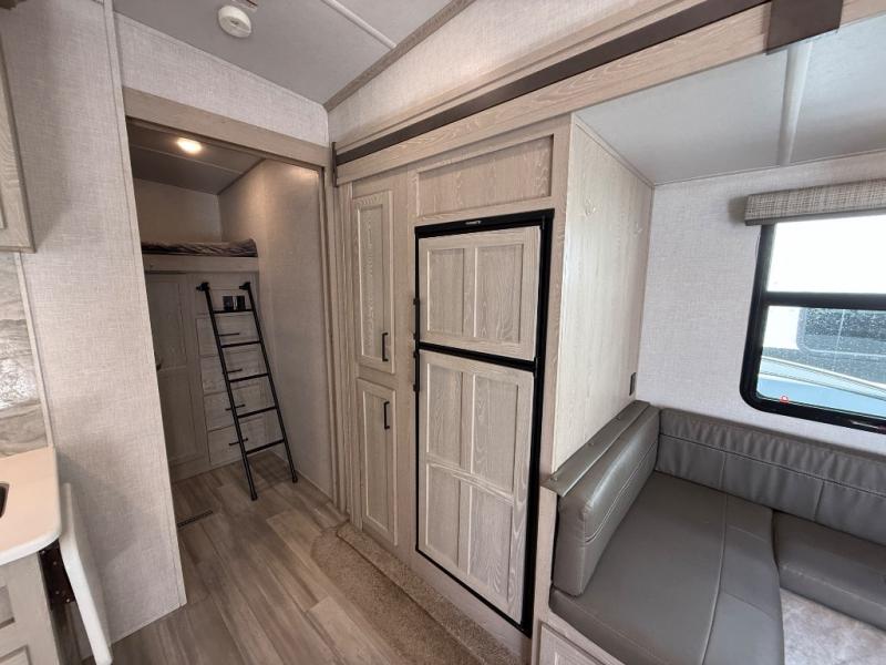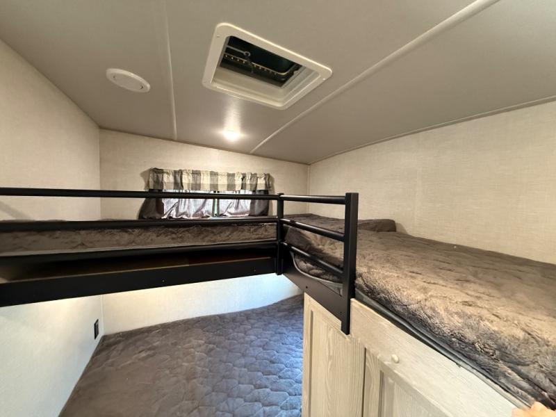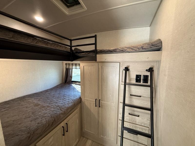 It's time to imagine outdoor fun with your family and friends at the state park or RV resort of you choice! The kids will have their own privacy after sliding the bunkhouse door open to find triple bunk beds, a ladder, and a dresser to keep everything tidy. You might even like to add a washer/dryer option in the prepped space. The kitchen provides everything you will need to make warm meals including a countertop extension and pantry. You can retire to the front master bedroom to relax and unwind after hiking, biking or kayaking all day. The full bathroom provides everything you will need to stay clean and refreshed for the next adventure the kids want to go on. You might even like to choose a few more options to customize your RV.