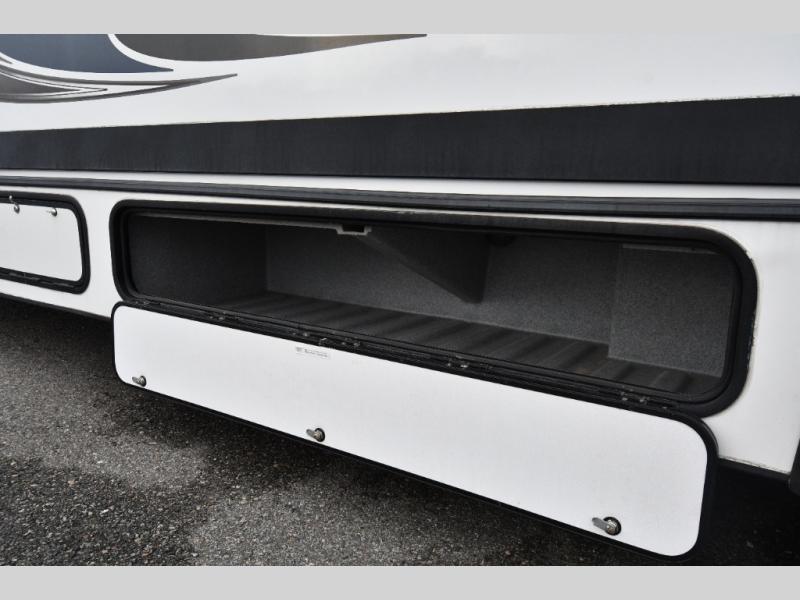 Pass-through exterior storage for gear, chairs, and camping essentials