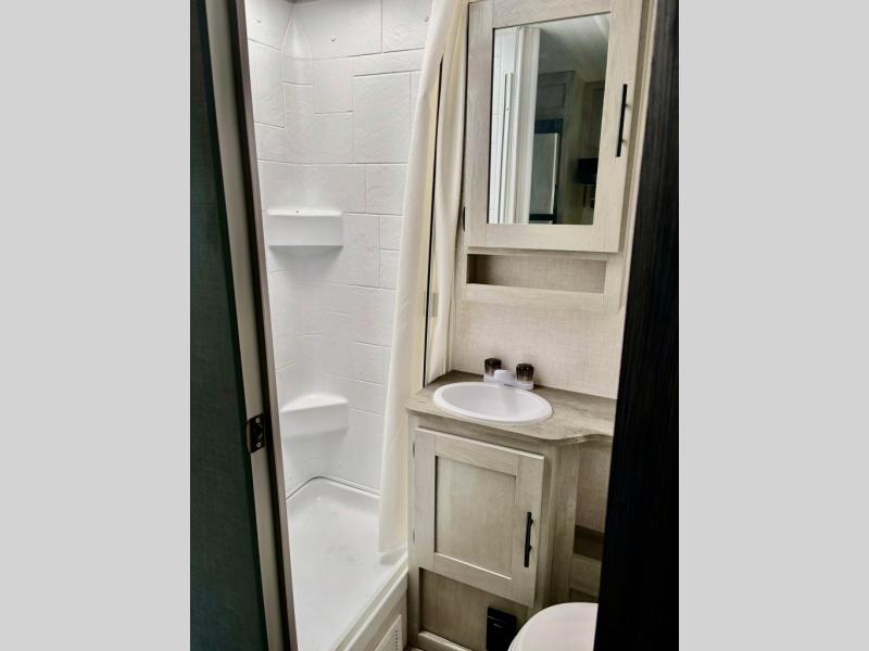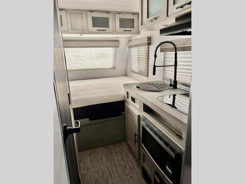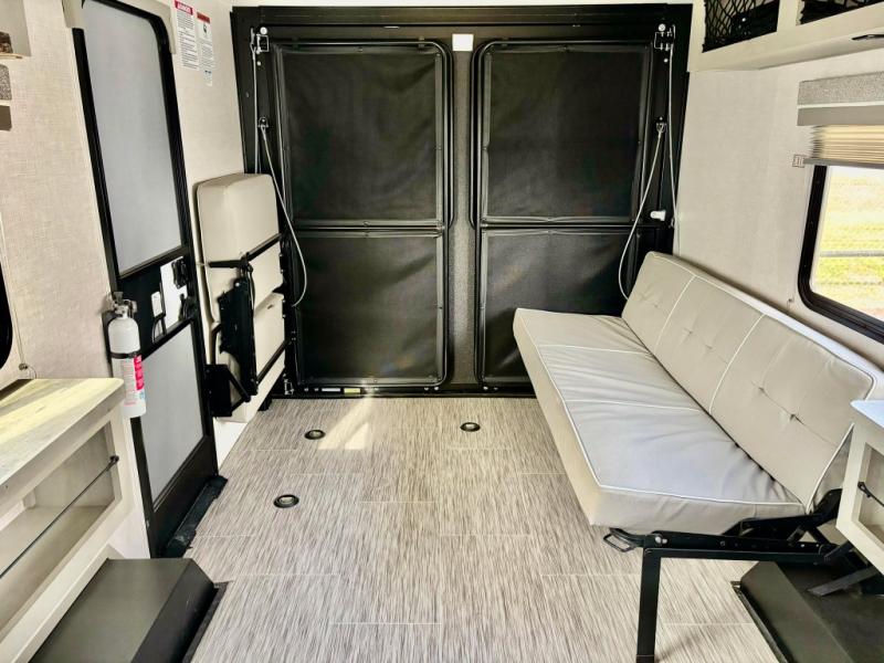 Each IBEX travel trailer and toy hauler from Forest River are built lightweight and ready for any outdoor enthusiast from the all terrain tires and increased ground clearance, the Rhino Rack RVT tracks, the solar system with large panel, controller and 1000W inverter plus the Cold Weather package with heated and enclosed underbelly, tank pad heaters and enclosed termination system. The interior will keep you comfortable with the bedding and furniture included, the JBL wireless Bluetooth audio system, the 15K air conditioner and the kitchen and bathroom amenities. Make your selection today and start your adventure!