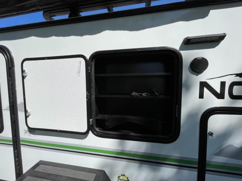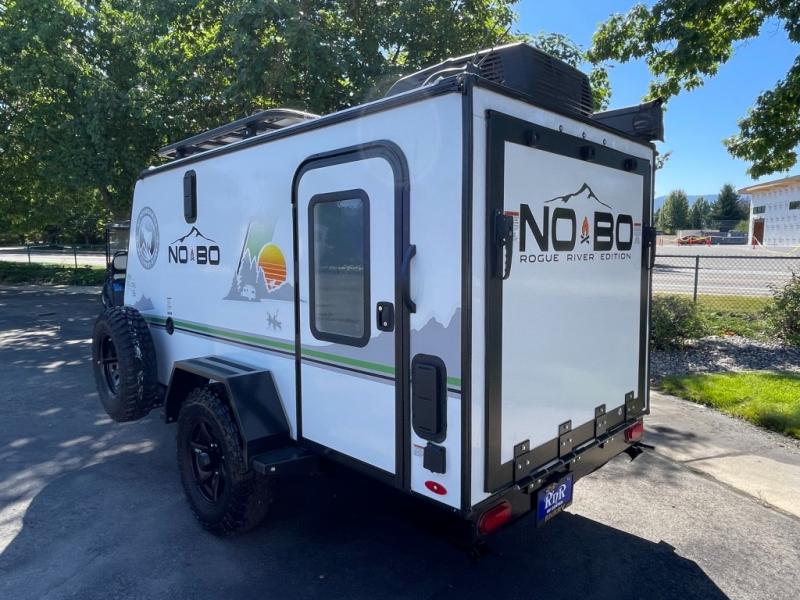 The No Boundaries travel trailers and toy haulers by Forest River are easy to tow by a four or six-cylinder vehicle because they range in weights from under 2,000 pounds up to 5,000 pounds. Depending on the model you choose, you will find independent torsion suspension with industry-leading cargo capacity, six-lug satin black aluminum wheels and All-Terrain tires, frame-mounted walkable steel fenders, a laminated Azdel exterior, a Cold Weather package, and a fully walkable 500-LB roof with PVC roofing membrane. The interior offers an exclusive central vacuum system plus much more! You will find a NOBO in a 10 Series, 16 Series or a 19 Series to fit your extreme lifestyle, so make your selection today!