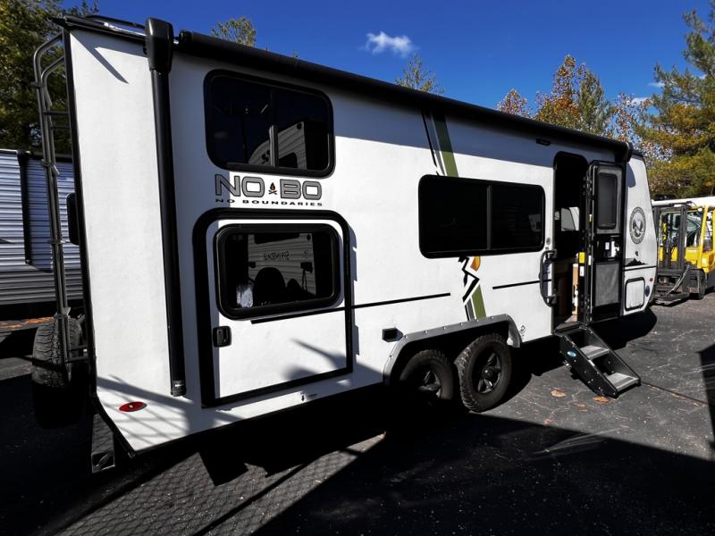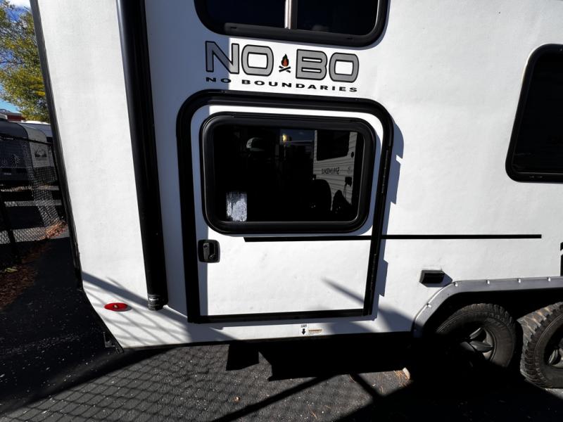The No Boundaries travel trailers and toy haulers by Forest River are easy to tow by a four or six-cylinder vehicle because they range in weights from under 2,000 pounds up to 5,000 pounds. Depending on the model you choose, you will find independent torsion suspension with industry-leading cargo capacity, six-lug satin black aluminum wheels and All-Terrain tires, frame-mounted walkable steel fenders, a laminated Azdel exterior, a Cold Weather package, and a fully walkable 500-LB roof with PVC roofing membrane. The interior offers an exclusive central vacuum system plus much more! You will find a NOBO in a 10 Series, 16 Series or a 19 Series to fit your extreme lifestyle, so make your selection today!