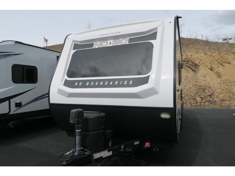 The No Boundaries travel trailers and toy haulers by Forest River are easy to tow by a four or six-cylinder vehicle because they range in weights from under 2,000 pounds up to 5,000 pounds. Depending on the model you choose, you will find independent torsion suspension with industry-leading cargo capacity, six-lug satin black aluminum wheels and All-Terrain tires, frame-mounted walkable steel fenders, a laminated Azdel exterior, a Cold Weather package, and a fully walkable 500-LB roof with PVC roofing membrane. The interior offers an exclusive central vacuum system plus much more! You will find a NOBO in a 10 Series, 16 Series or a 19 Series to fit your extreme lifestyle, so make your selection today!