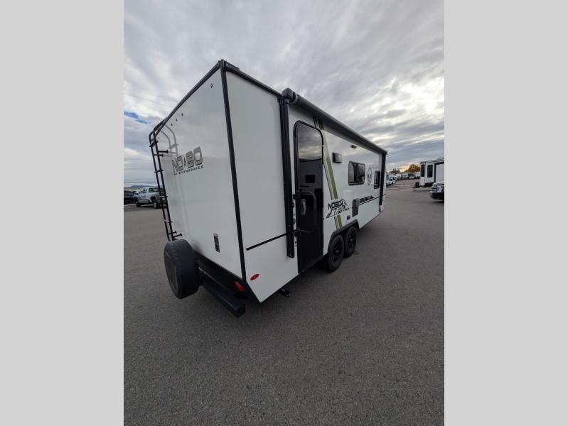 The No Boundaries travel trailers and toy haulers by Forest River are easy to tow by a four or six-cylinder vehicle because they range in weights from under 2,000 pounds up to 5,000 pounds. Depending on the model you choose, you will find independent torsion suspension with industry-leading cargo capacity, six-lug satin black aluminum wheels and All-Terrain tires, frame-mounted walkable steel fenders, a laminated Azdel exterior, a Cold Weather package, and a fully walkable 500-LB roof with PVC roofing membrane. The interior offers an exclusive central vacuum system plus much more! You will find a NOBO in a 10 Series, 16 Series or a 19 Series to fit your extreme lifestyle, so make your selection today!