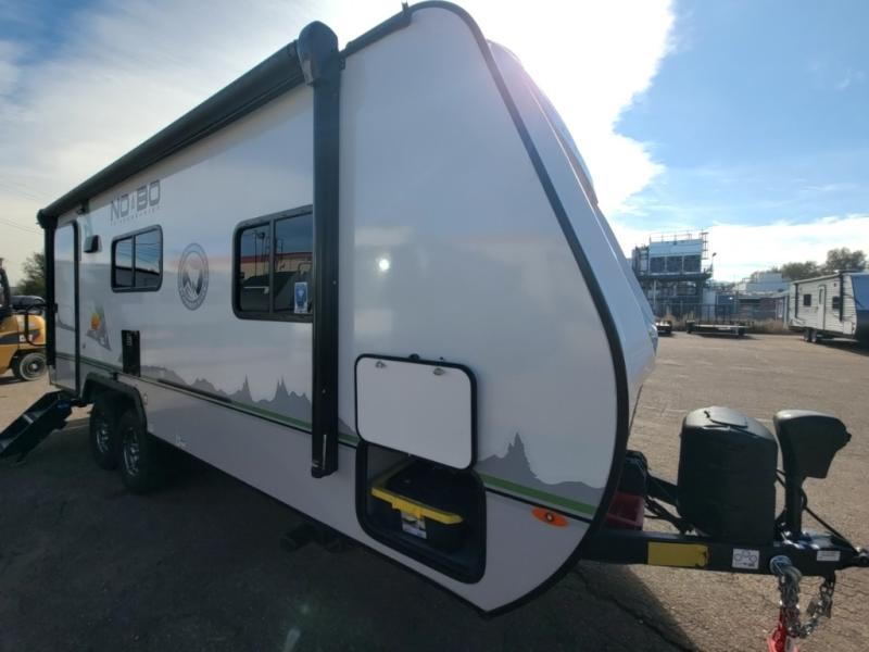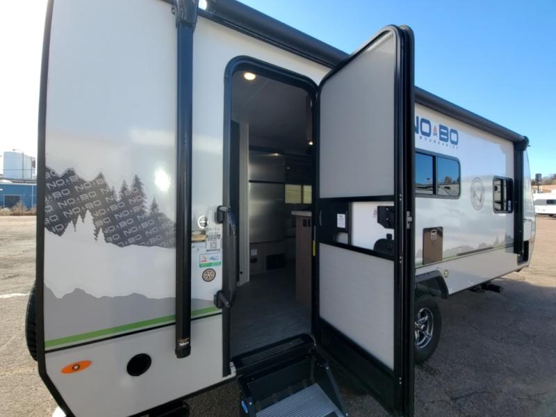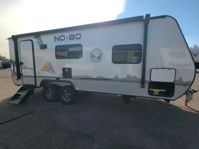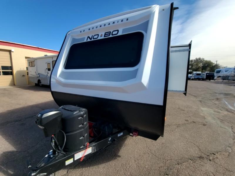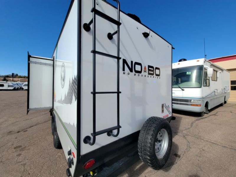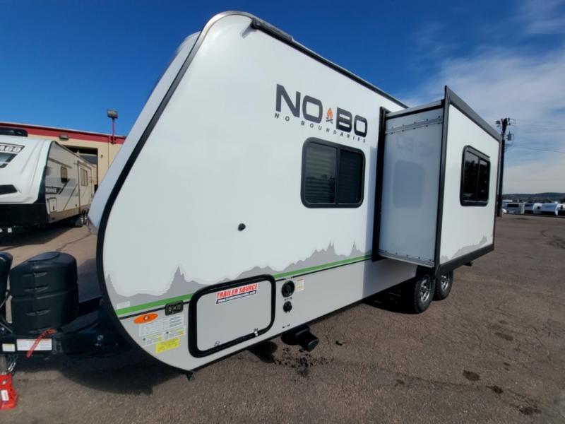 The No Boundaries travel trailers and toy haulers by Forest River are easy to tow by a four or six-cylinder vehicle because they range in weights from under 2,000 pounds up to 5,000 pounds. Depending on the model you choose, you will find independent torsion suspension with industry-leading cargo capacity, six-lug satin black aluminum wheels and All-Terrain tires, frame-mounted walkable steel fenders, a laminated Azdel exterior, a Cold Weather package, and a fully walkable 500-LB roof with PVC roofing membrane. The interior offers an exclusive central vacuum system plus much more! You will find a NOBO in a 10 Series, 16 Series or a 19 Series to fit your extreme lifestyle, so make your selection today!
