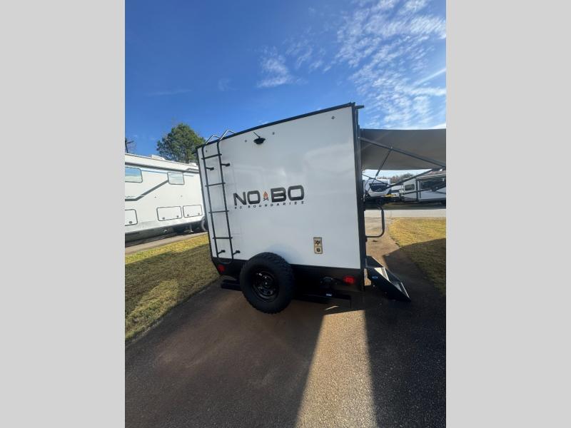 The No Boundaries travel trailers and toy haulers by Forest River are easy to tow by a four or six-cylinder vehicle because they range in weights from under 2,000 pounds up to 5,000 pounds. Depending on the model you choose, you will find independent torsion suspension with industry-leading cargo capacity, six-lug satin black aluminum wheels and All-Terrain tires, frame-mounted walkable steel fenders, a laminated Azdel exterior, a Cold Weather package, and a fully walkable 500-LB roof with PVC roofing membrane. The interior offers an exclusive central vacuum system plus much more! You will find a NOBO in a 10 Series, 16 Series or a 19 Series to fit your extreme lifestyle, so make your selection today!