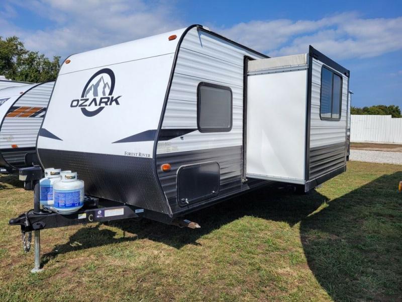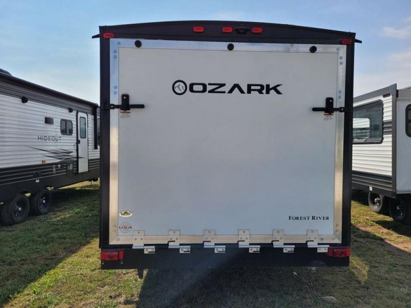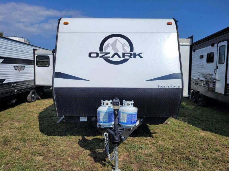 If the first thing you love to see in the morning are the towering pine trees and the flowing rivers, then don't wait another minute to grab the Forest River Ozark travel trailer or toy hauler! With your very own Ozark towing behind you, there isn't a place that you can't call home. The upgraded TUFFCOAT aluminum exterior and front diamond plate rock guard will protect your trailer, and the durable one-piece linoleum flooring on the interior will be easy to clean when Fido decides to spill his dog food all over the floor. The Ozark has USB charging outlets and preparations for a back-up camera at your convenience, and it also comes with a 20,000 BTU furnace and 13,500 BTU air conditioner to keep the interior always at the right temperature.