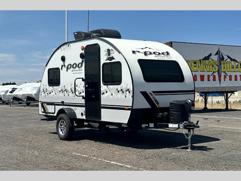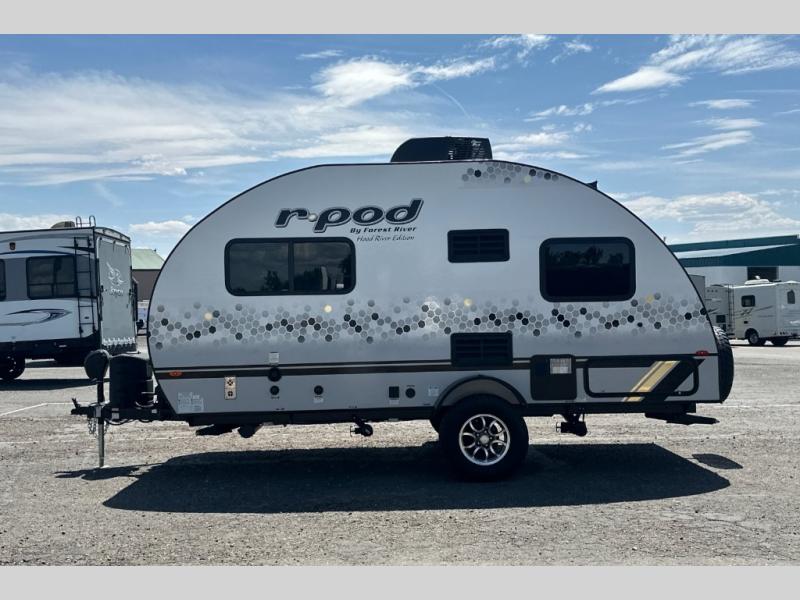 This R-Pod travel trailer by Forest River is perfect for your weekend getaways. You can easily sleep three people with a rear RV queen bed and the front dinette folded down for the little ones. This unit also includes an LED TV to enjoy while you're stuck inside on a rainy day. You will also find a convenient wet bath where you can easily get ready for your day of fun and adventure! Come check out this travel trailer today!