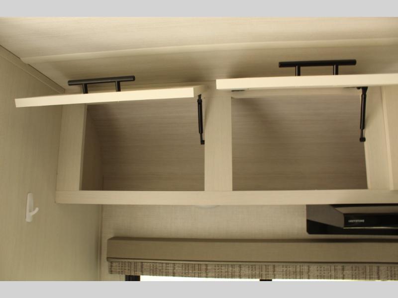The slide-out dinette offers comfortable seating and a great place to dine, work, or play games. The large front window lets in tons of natural light and gives you incredible views wherever you’re parked. Plus, the dinette easily converts to extra sleeping space if needed.