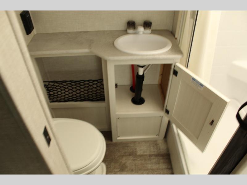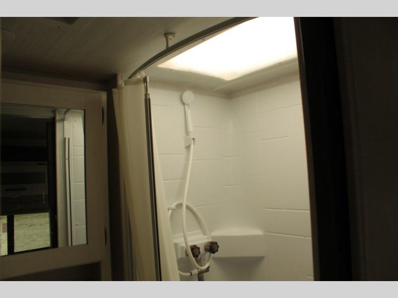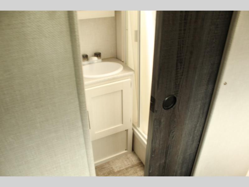 One of the standout features of the RP-195 is the spacious rear bath with a separate shower, vanity, and foot-flush toilet. It provides a private, comfortable space to refresh after long hikes or beach days — no need to rely on campground facilities.