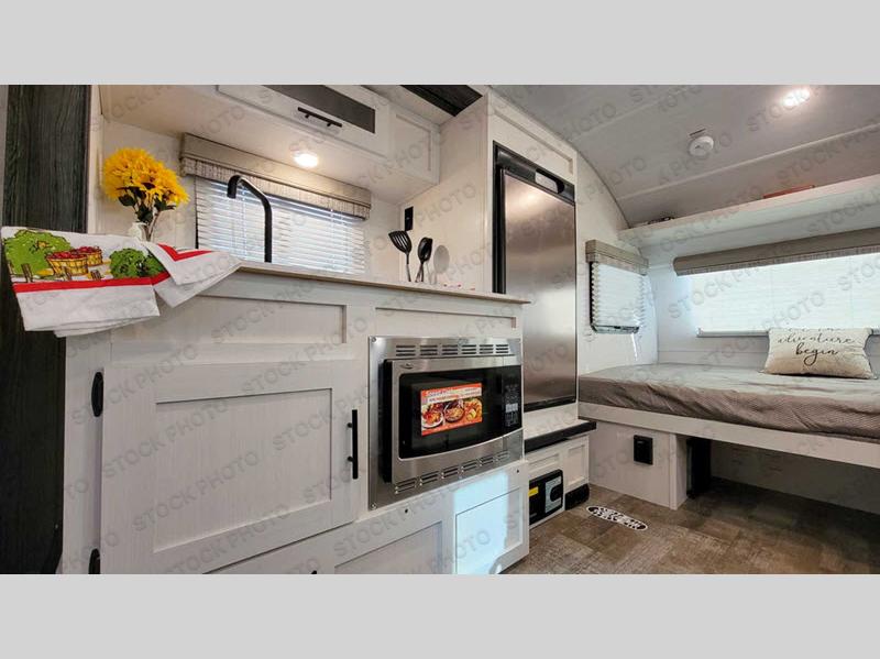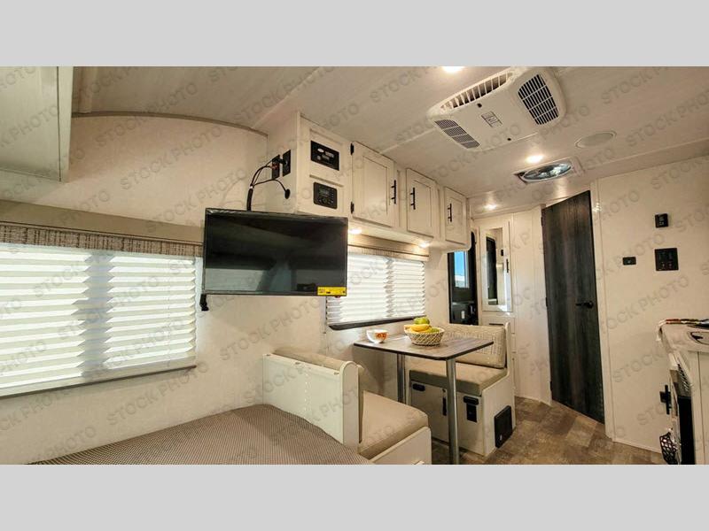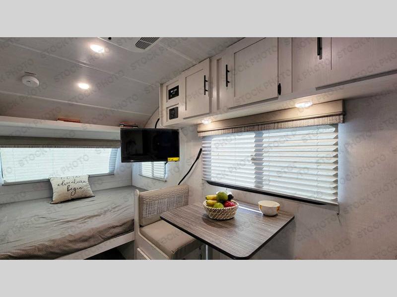 Get ready to travel just about anywhere with this lightweight R-Pod travel trailer! This model is ideal for any couple. There is sleeping space on the front RV queen bed, and the 24" x 75" booth dinette can easily convert into a sleeping spot for an additional camper. The slide out helps open up the floor space, plus you will find all of the kitchen amenities here. The spacious full bath has plenty of room to easily get ready for any adventure that lies ahead, and you will also enjoy all of the exterior storage for all of your outdoor camping gear. This unit even includes an LED TV for movie nights!