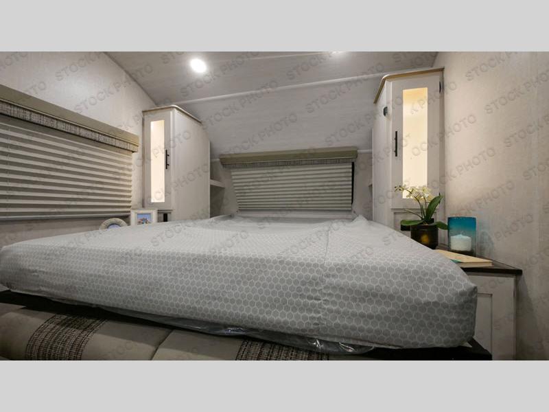 You're going to love all of the conveniences and versatility of this R-Pod travel trailer! The front Murphy bed can fold away to reveal a sofa which gives you a comfortable place to sit during the day and to sleep at night too. The rear full bath features everything you will need to get squeaky clean each morning, as well as a large wardrobe for you to store your linens. After you have whipped up your best meal with the two-burner cooktop or convection microwave, you can head to the 30" x 75" booth dinette and enjoy eating it there comfortably. There is plenty of storage space inside, but if you need more space, then you can use the exterior pass-through storage!