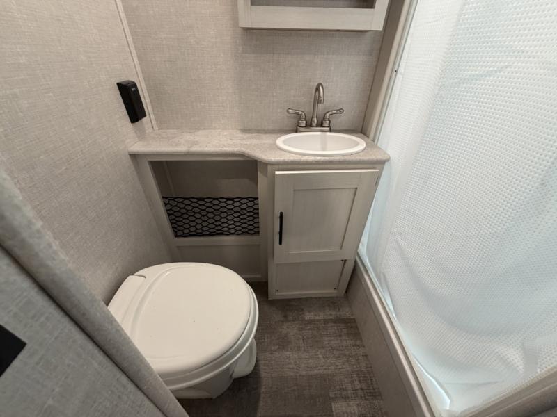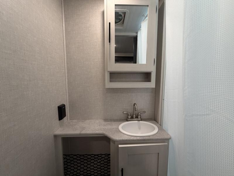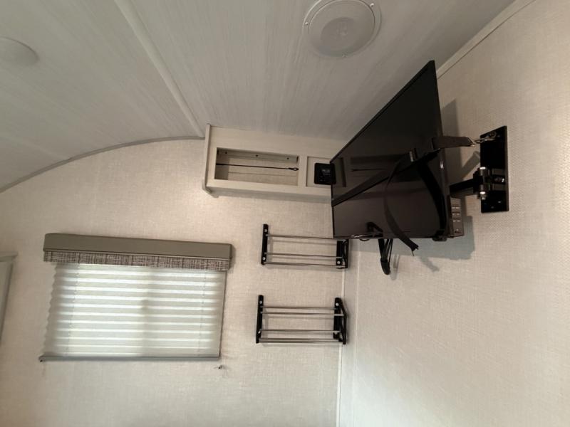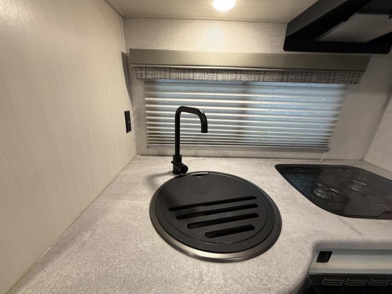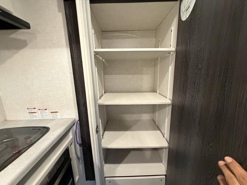 You are going to love waking up every camping weekend in this R-Pod travel trailer which features plenty of space and loads of storage for all of your things. The rear kitchen is unique and provides a large window above the cooktop and sink so that you can feel like you are cooking right outdoors even on a day when the weather isn't perfect. The U-shaped dinette and pantry within the slide out provides dining and sleeping space, dry good storage, as well as more interior floor space. The front RV queen bed will allow you to wake refreshed for each new day of adventure with extra walking around space, and you will appreciate the windows on each side for cross ventilation, as well as a great view of your surroundings.