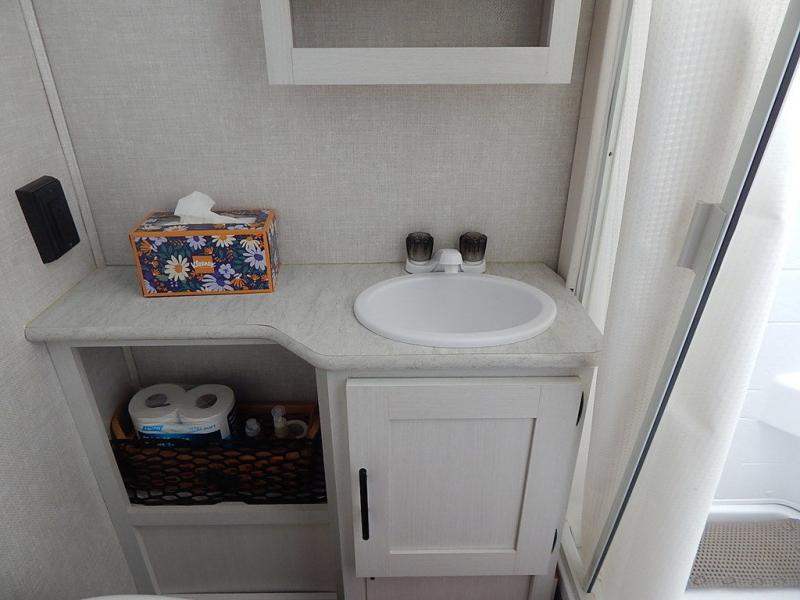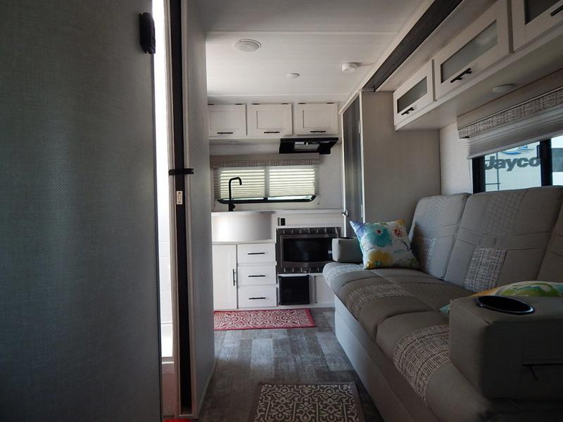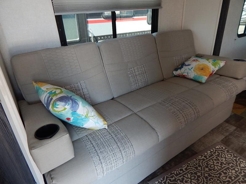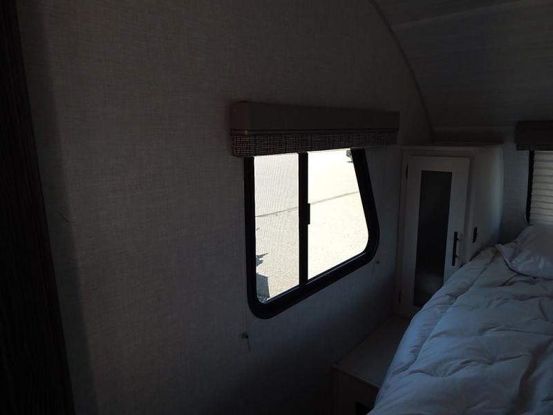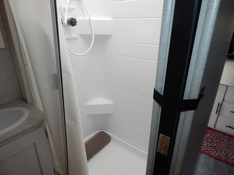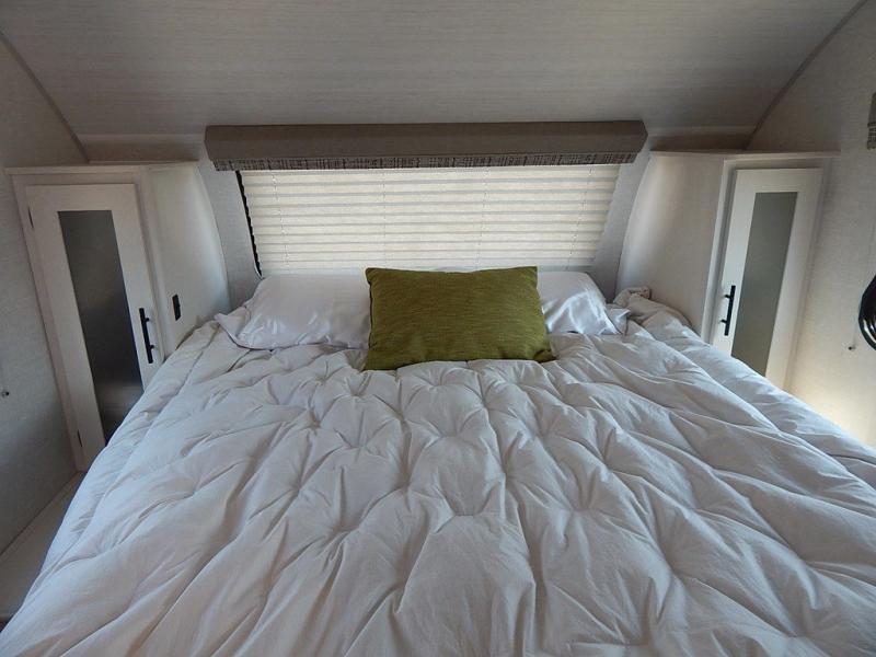 This is the perfect travel trailer for a couple or a small family, so pack your bags and get ready for an adventure in this R-Pod! After you've set up camp and had a look around the campgrounds, you can prepare lunch on the two-burner cooktop in the rear kitchen. There is a convenient three-way refrigerator and a pantry to store your favorite snacks and perishables, plus overhead compartments for your belongings. This model also includes a full bath so that you don't have to worry about using the camp's facilities, and the exterior pass-through storage allows you to bring along the fishing poles!