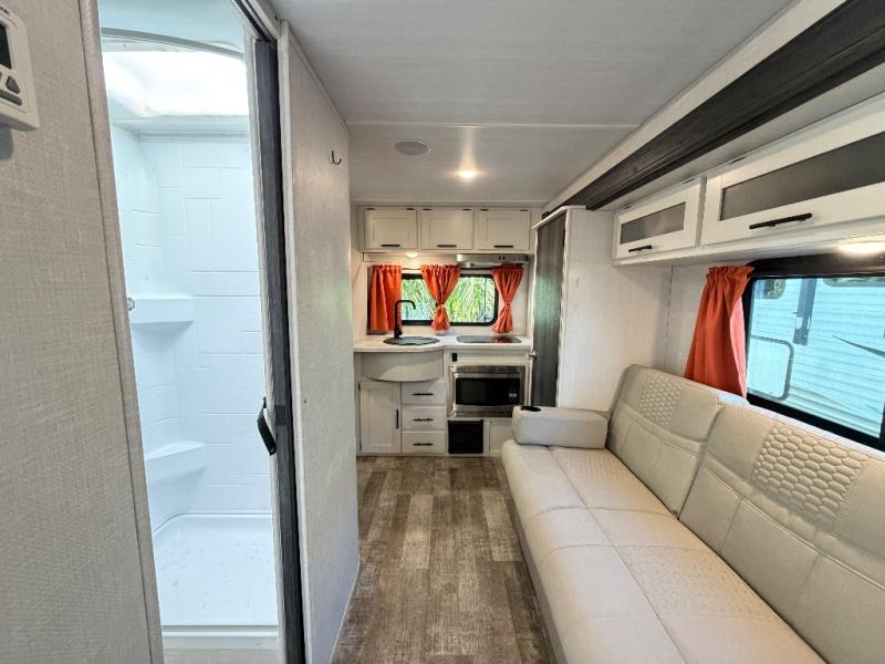 The R-Pod RP-196 offers a clean and comfortable layout with efficient kitchen space, a full bathroom, and a relaxing sleeping area. Lightweight construction and advanced features make it a reliable choice for weekend getaways and scenic road trips.