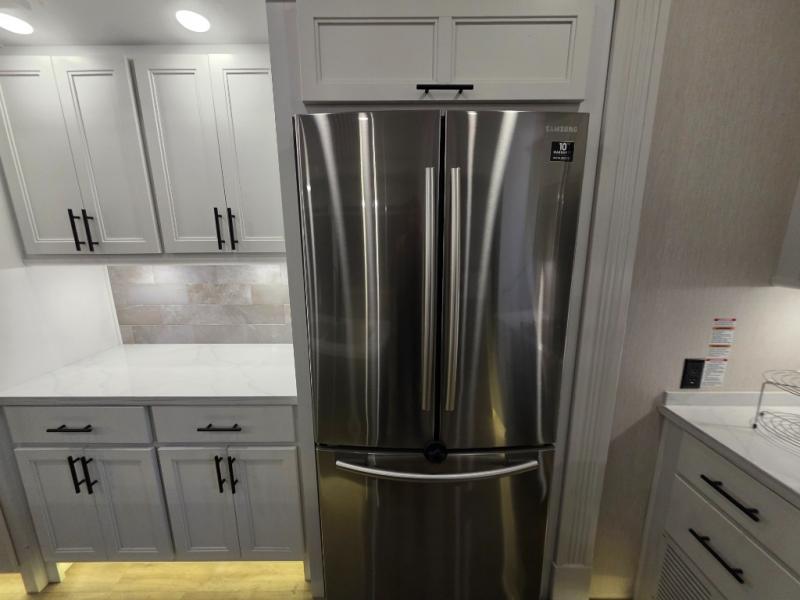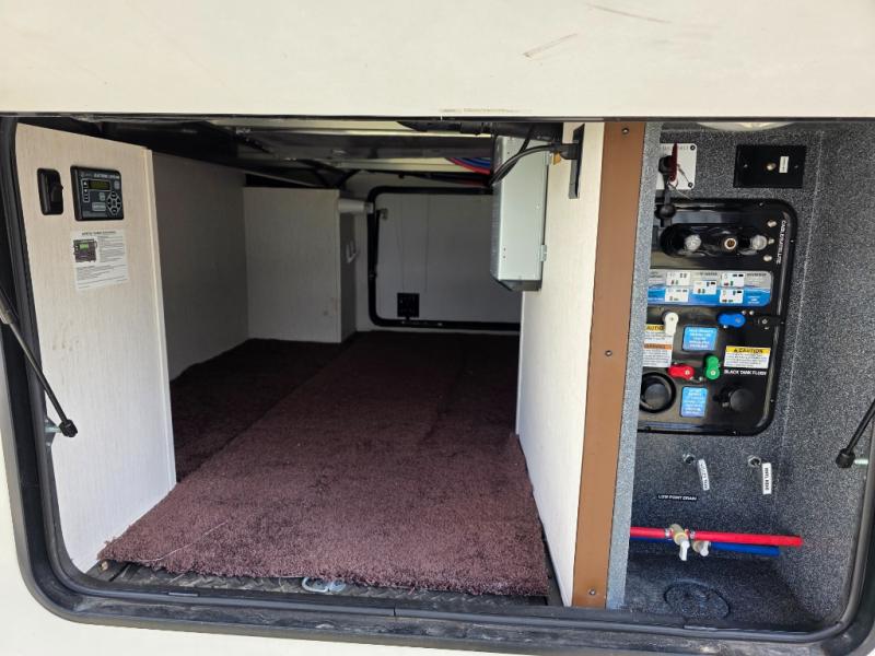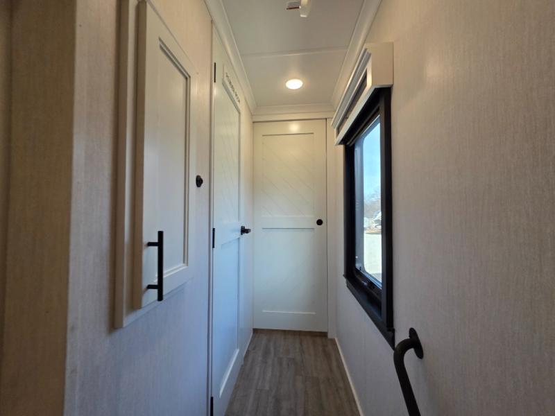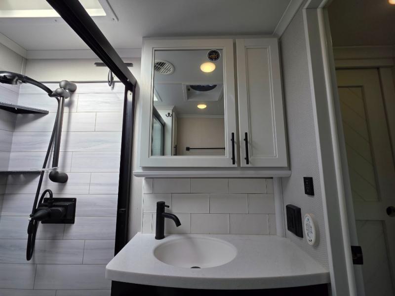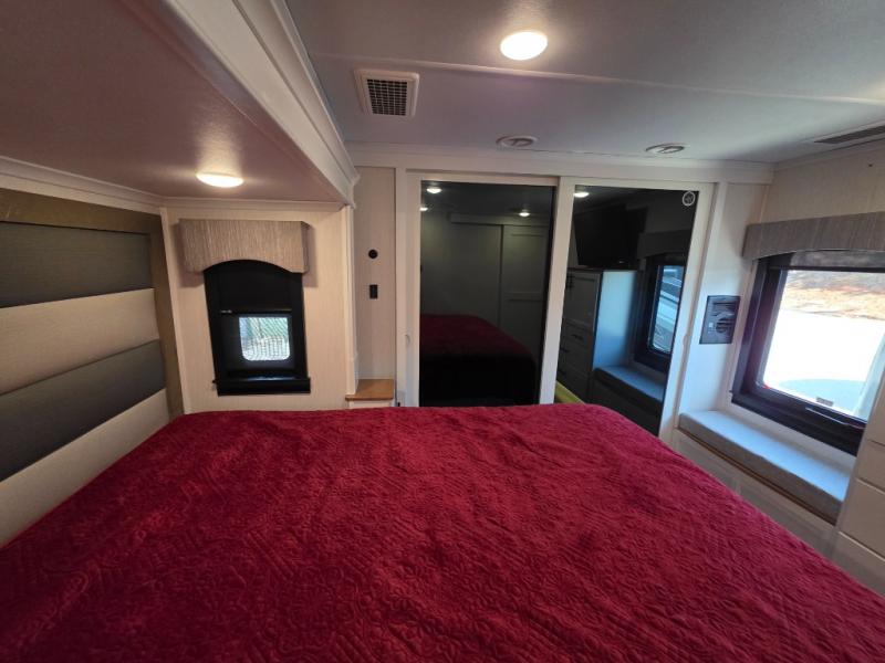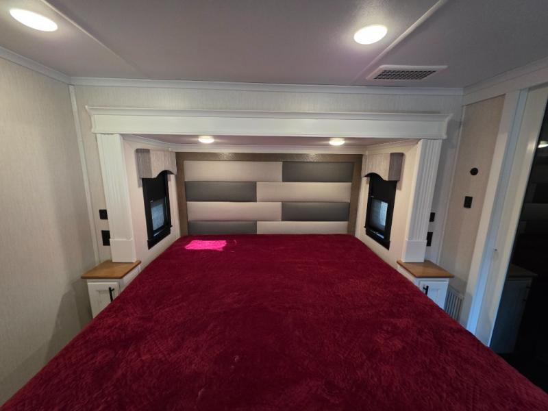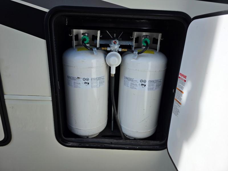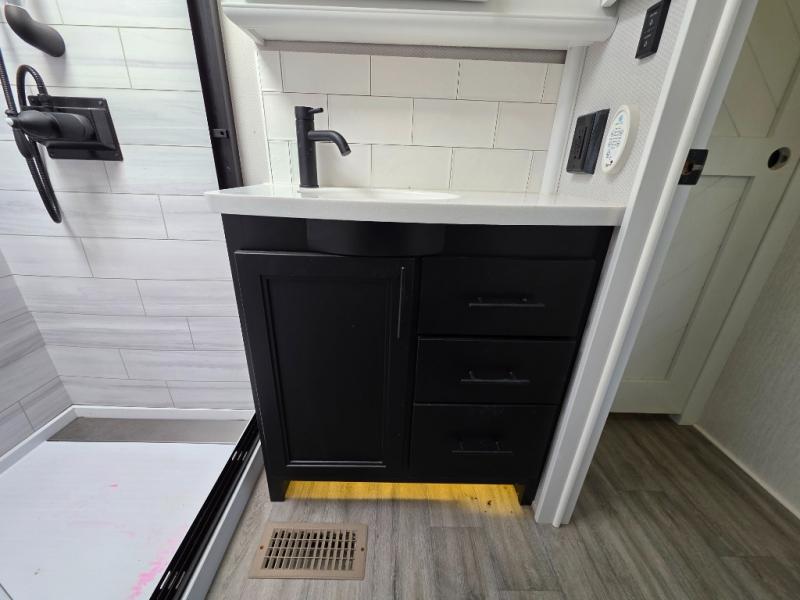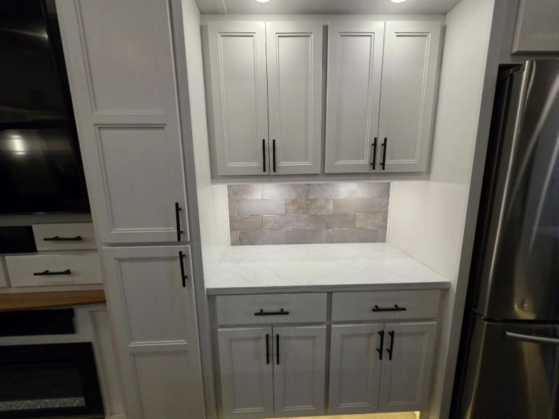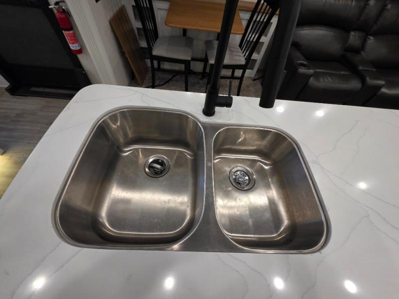 The Forest River RiverStone Reserve Series fifth wheel is an absolute dream! The construction is top notch with its wool-glass, residential-style insulation, 17.5" H-rated tires with aluminum rims, hydraulic slide outs, Dexter EZ Flex suspension system, painted full front fiberglass cap, and MORryde Step Above entry step. The RiverStone Reserve Series takes quality a step further by implementing a fully residential interior, the latest styles for interior design, and an excellent assortment of modern amenities. The central vacuum system is essential for keeping your unit clean while you are traveling, and the residential soft-close cabinet hinges are an added bonus that make your unit feel upscale. The 5,200 BTU fireplace is both functional and decorative, and the 190W solar panel, JBL Premium sound system, 1,000W inverter, and Firefly integrated touch control system are some of the great electronic features.